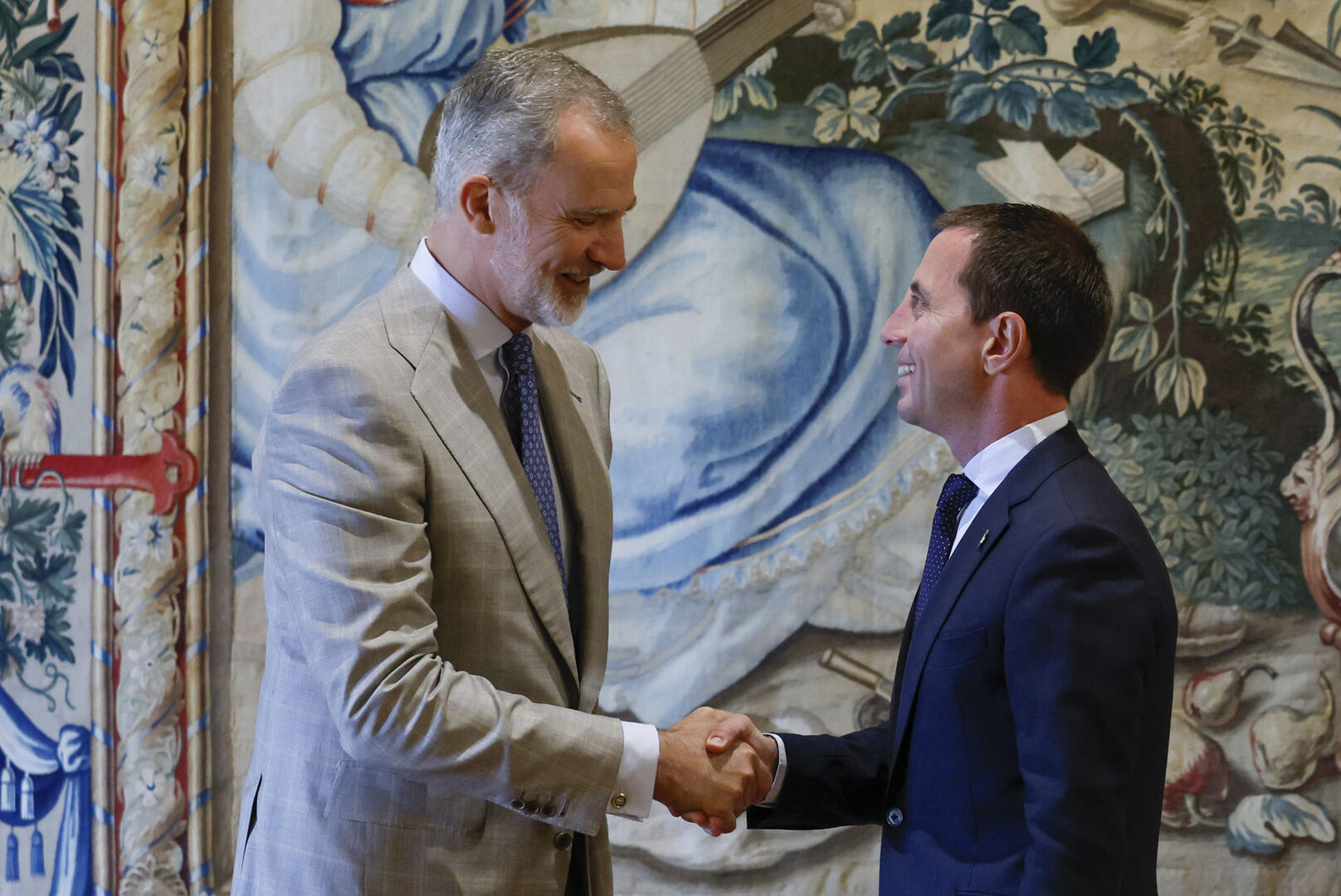El rey ha recibido este lunes en el Palacio de la Almudaina a la presidenta autonómica, Marga Prohens; al presidente del Parlamento, Gabriel Le Senne; al alcalde de Palma, Jaime Martínez; y al presidente del Consell de Mallorca, Llorenç Galmés.