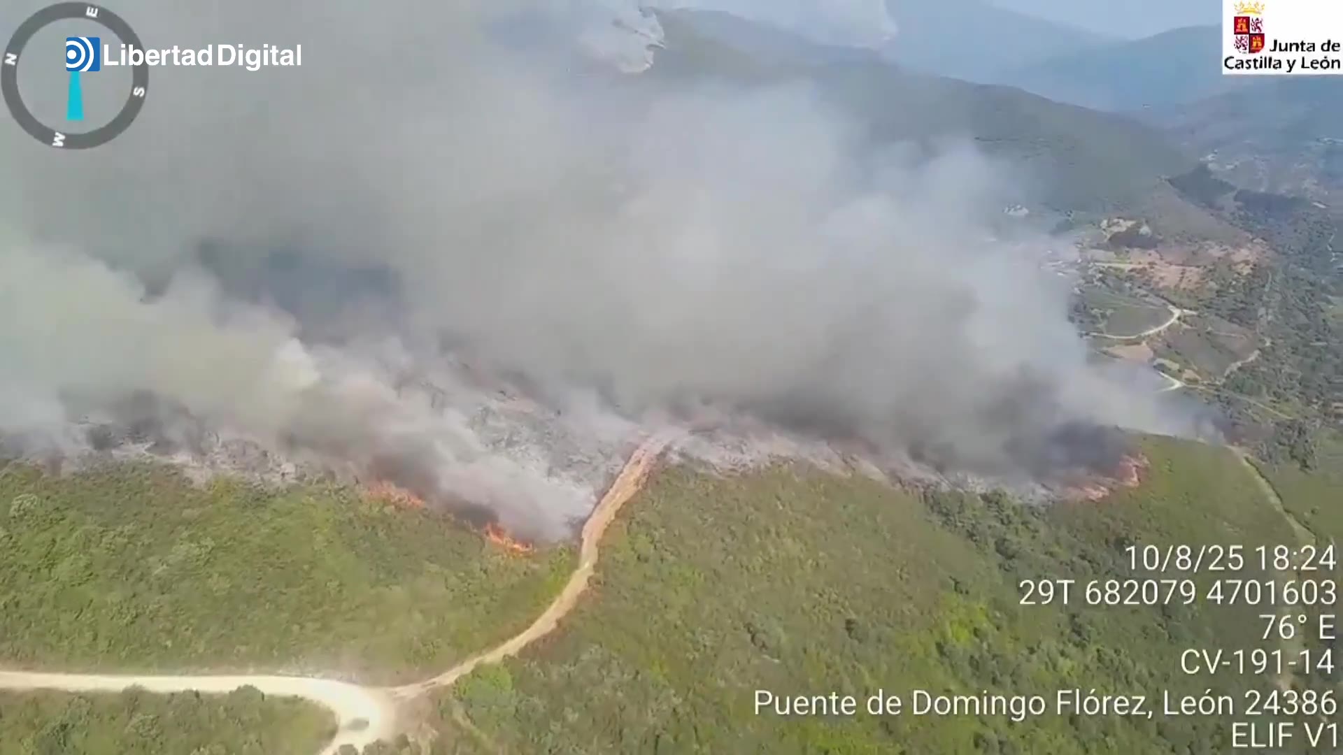 El espacio natural de Las Médulas, catalogado por la Unesco como Patrimonio de la Humanidad y corazón turístico de la comarca leonesa de El Bierzo, se ha visto afectado por las llamas del incendio declarado ayer en la localidad de Yeres, avivado por rachas de viento de hasta 50 kilómetros por hora y que ha obligado a desalojar a cerca de 800 personas de varios municipios.