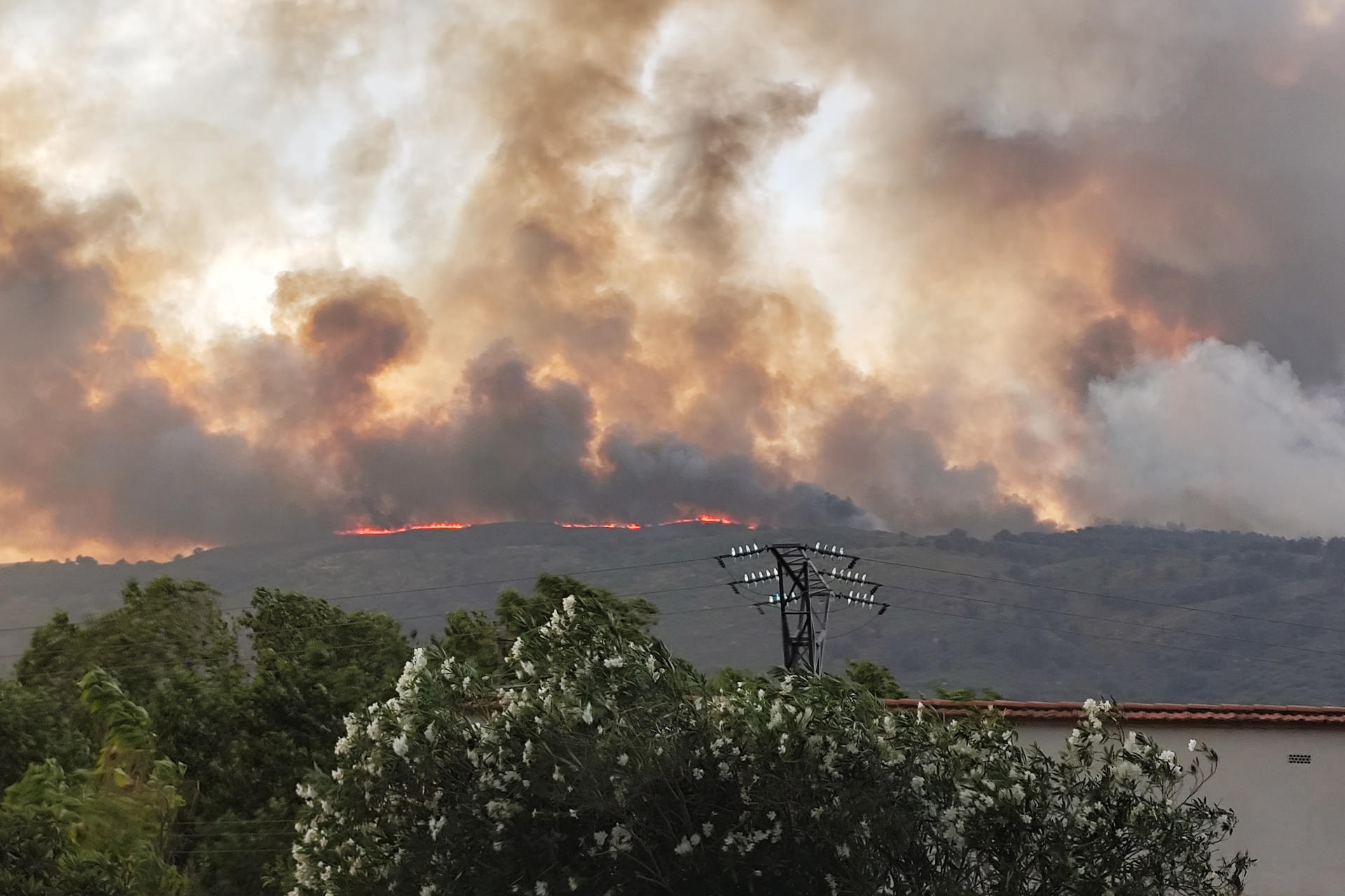 Vista del incendio forestal que afecta a Jarilla, Villar de Plasencia, Cabezabellosa y El Torno. 12 de agosto de 2025.