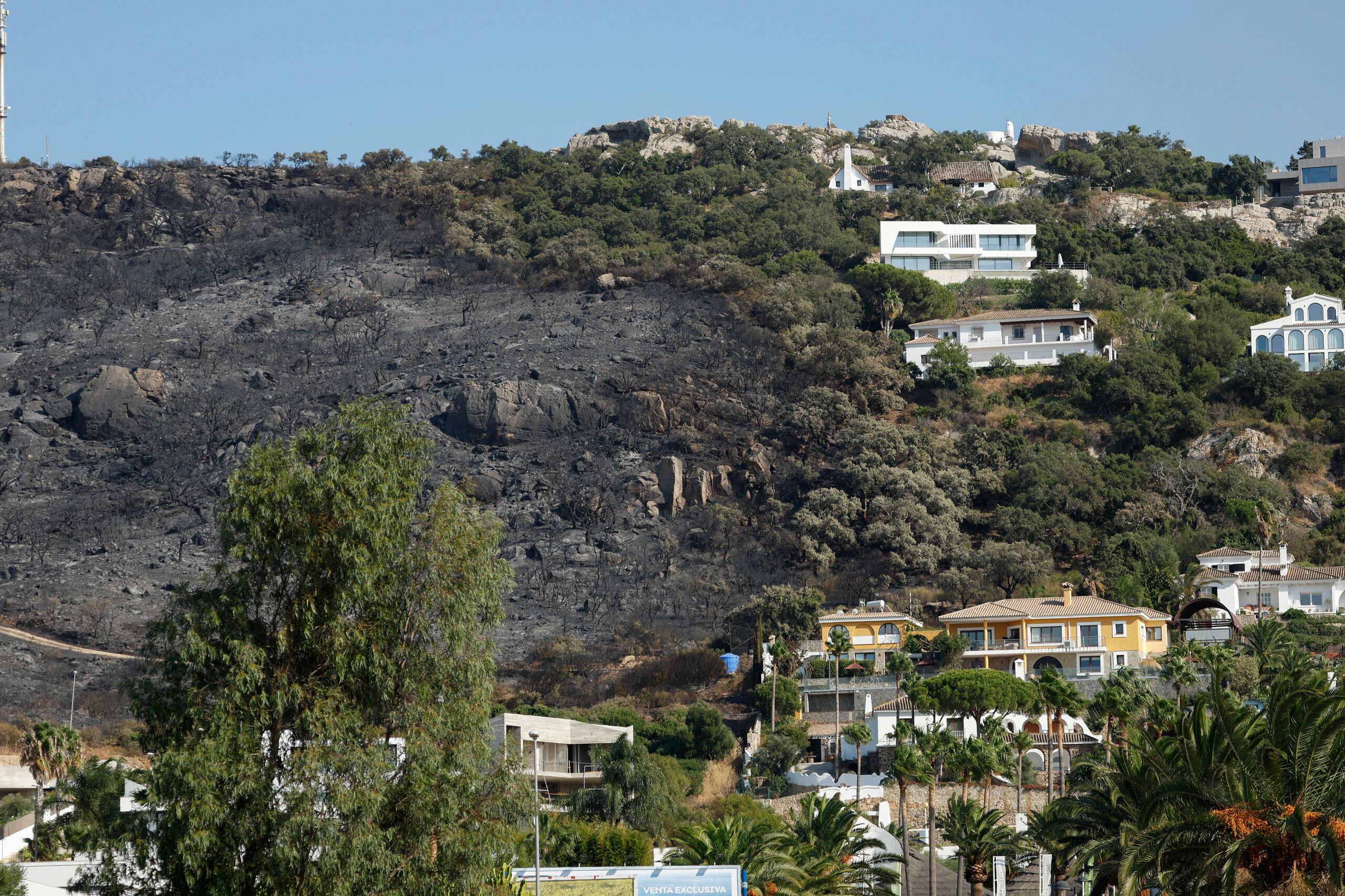 Imagen que muestra lo cerca que ha estado el fuego de las casas en Tarifa, Cádiz, a 12 de agosto de 2025.
