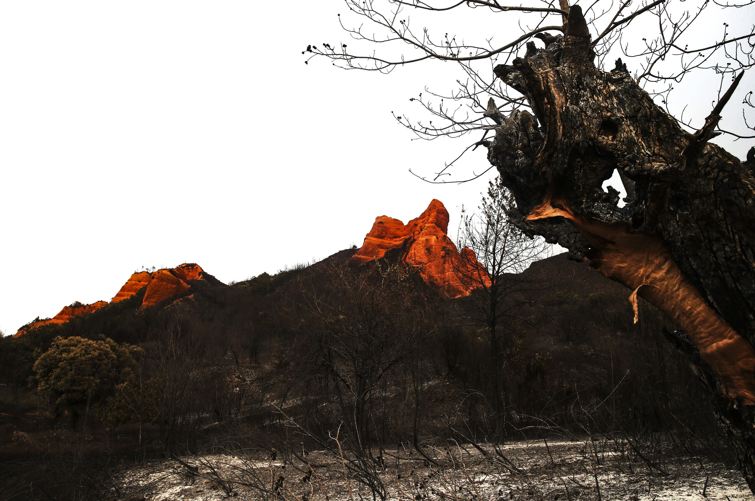 Paraje quemado en el espacio natural de Las Médulas, catalogado por la Unesco como Patrimonio de la Humanidad, en la provincia de León este martes este martes 12 de agosto de 2025.