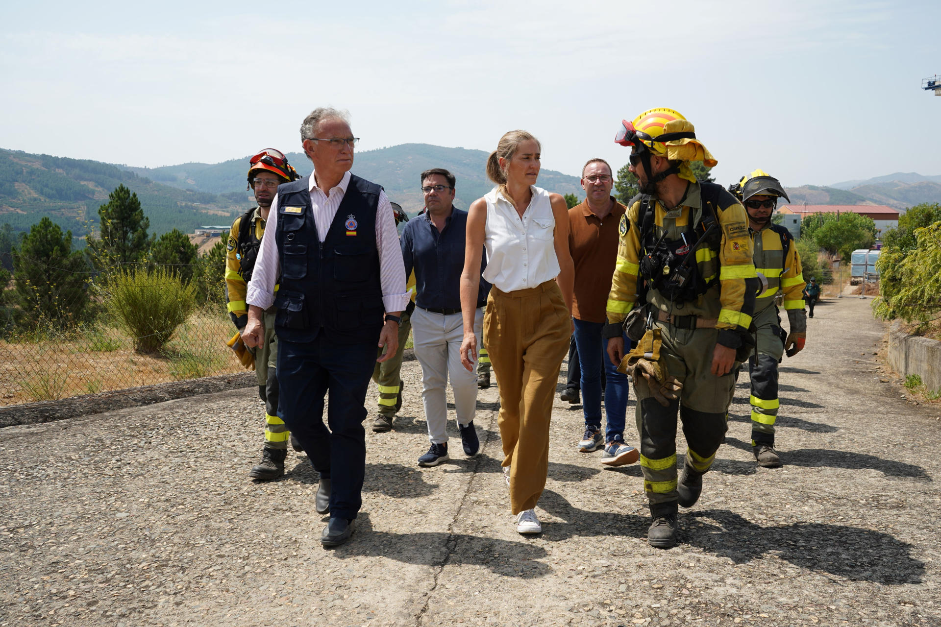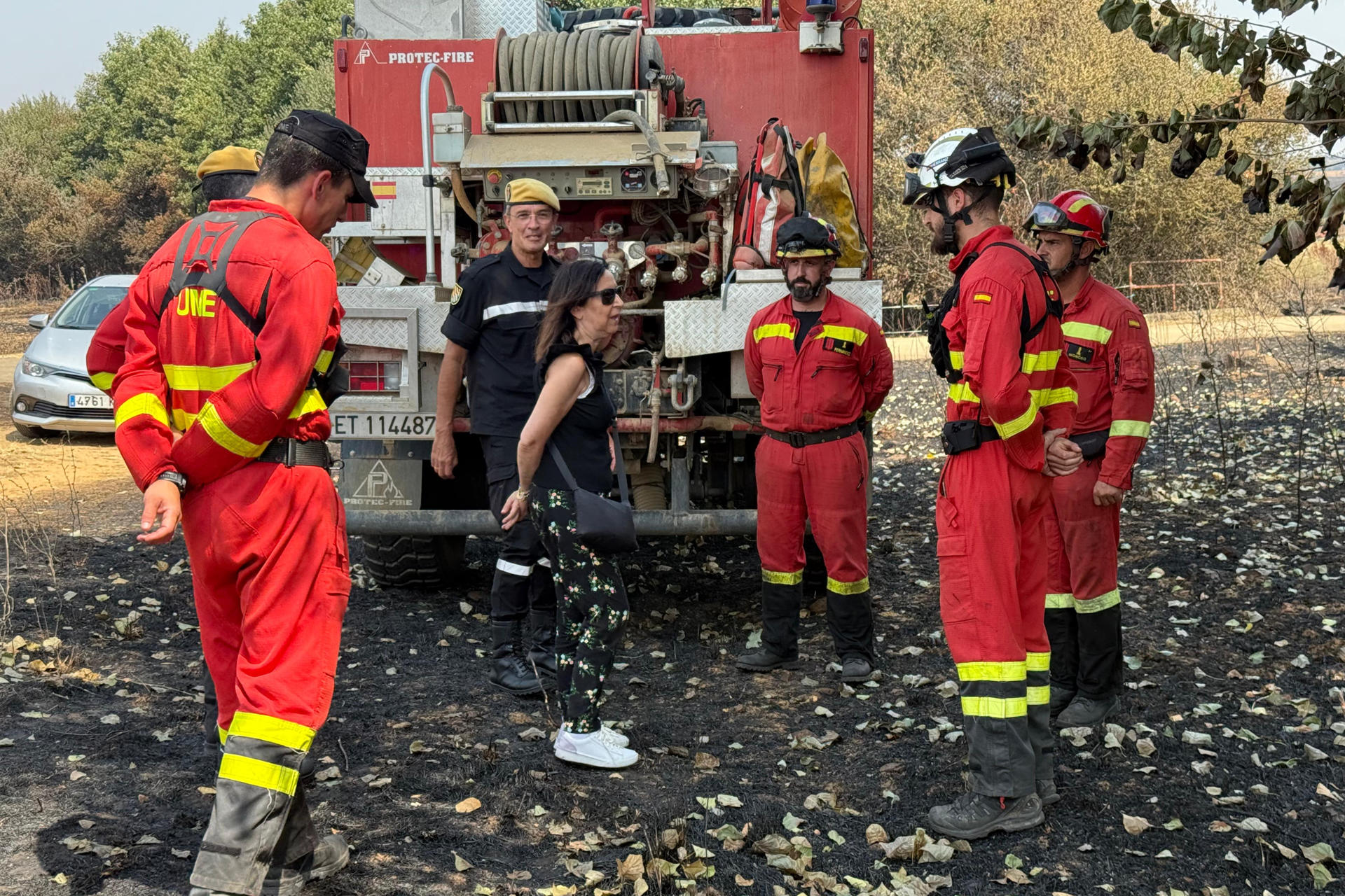 Sara Aagesen, ministra de Transición Ecológica y vicepresidenta tercera del Gobierno visitaba este sábado a los equipos de rescate del incendio de Cáceres
