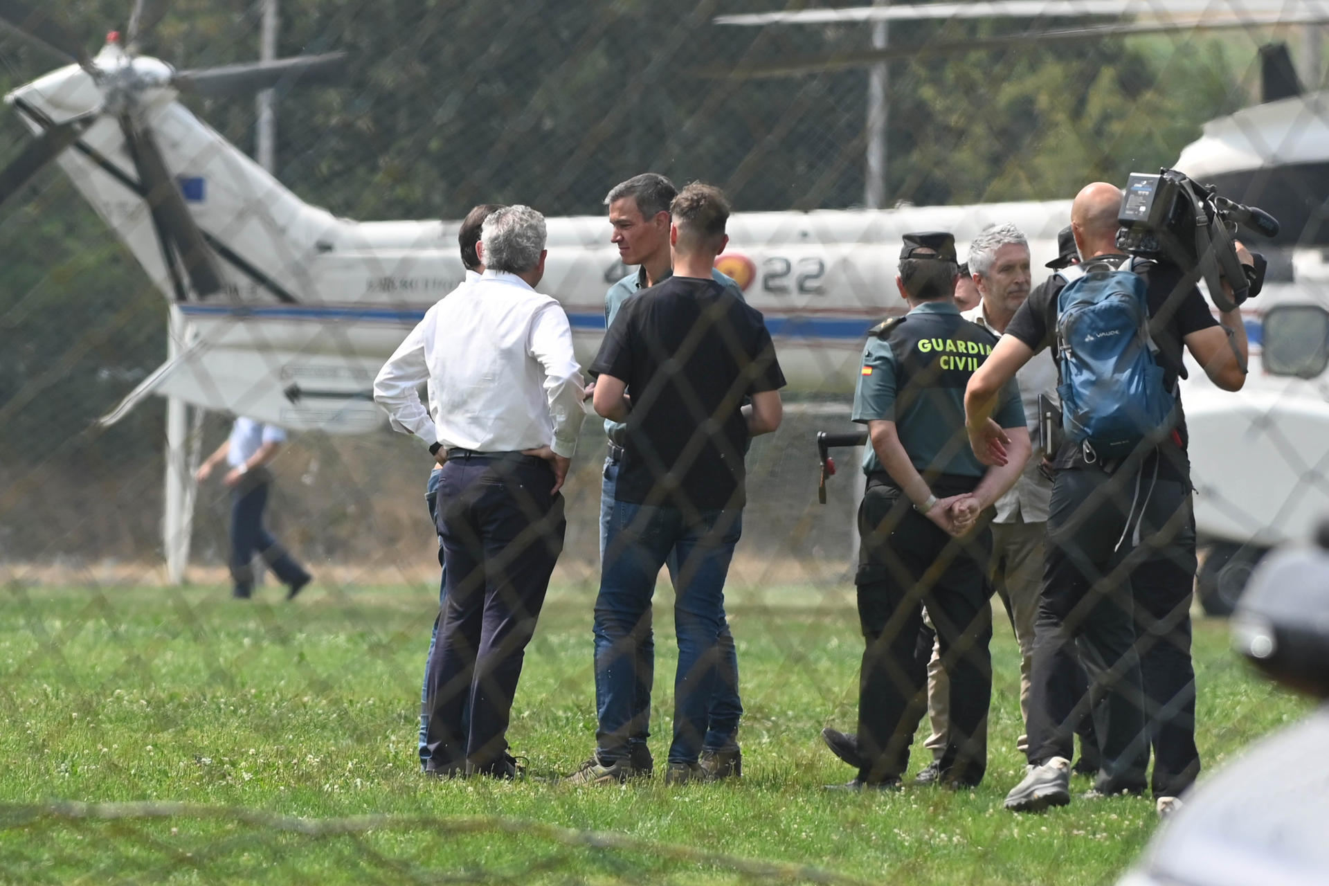 El presidente del Gobierno llega en helicóptero a León para seguir las labores de extinción. Le recibe Alfonso Fernández Mañueco.