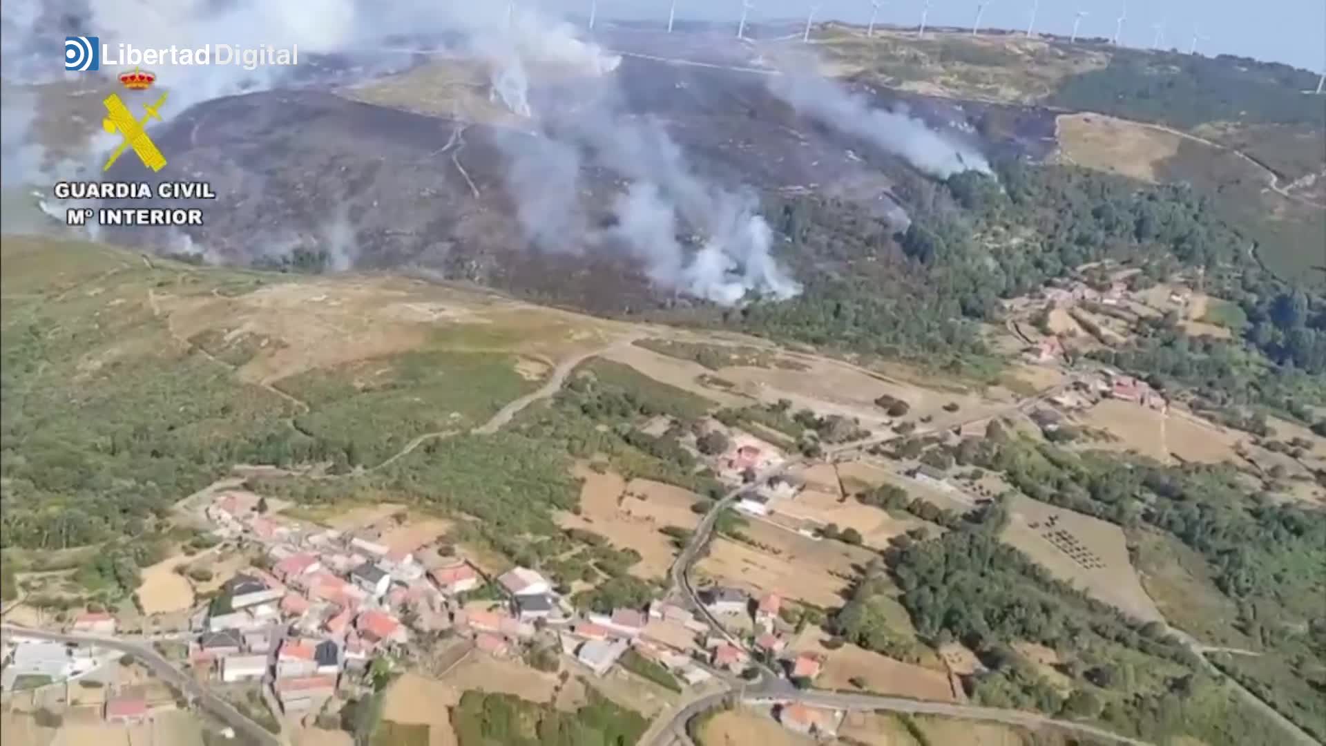 La Guardia Civil ha difundido imágenes aéreas del incendio forestal que afecta al entorno del municipio de Avión, en la provincia de Ourense, captadas durante la tarde de ayer.