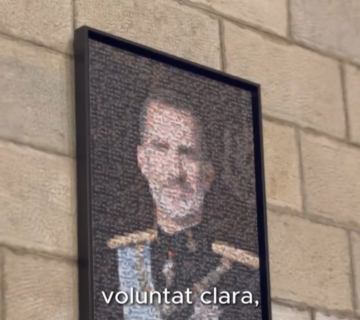 La respuesta de Salellas fue encargar un mosaico con escenas del 1-O cuya colocación diera como resultado un retrato difuminado del monarca. La presentación del cuadro se llevo a cabo en la tarde del lunes con la presencia de prebostes del separatismo como los presidentes de Òmnium Cultura, Xavier Antich, y de la Assemblea Nacional Catalana (ANC), el cantante Lluís Llach.