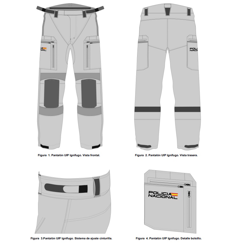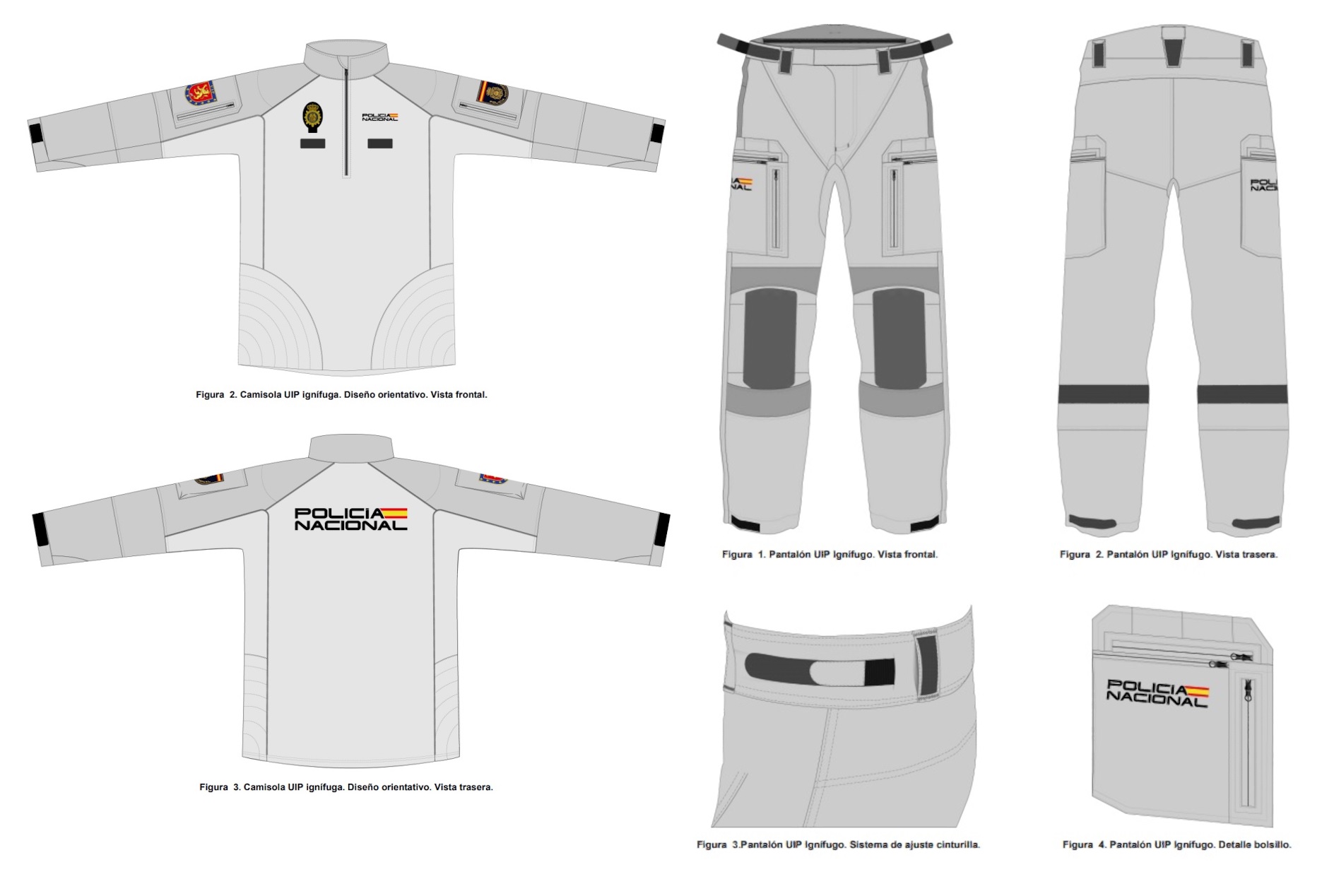 La Policía exige a las empresas la presentación de unas muestras generales, que deberán ser de una tonalidad azul similar a la actual. Para el primer lote, se piden dos camisolas UIP ignífugas en tallas XS y M con el hilo de confección en color verde y una en talla M con el hilo de confección a tono con el tejido principal. En el caso de los pantalones, que también deben ser ignífugos, se exige una talla 36R y una 42A con el hilo de confección color verde, además de otra 42A con el hilo de confección a tono con el tejido principal.