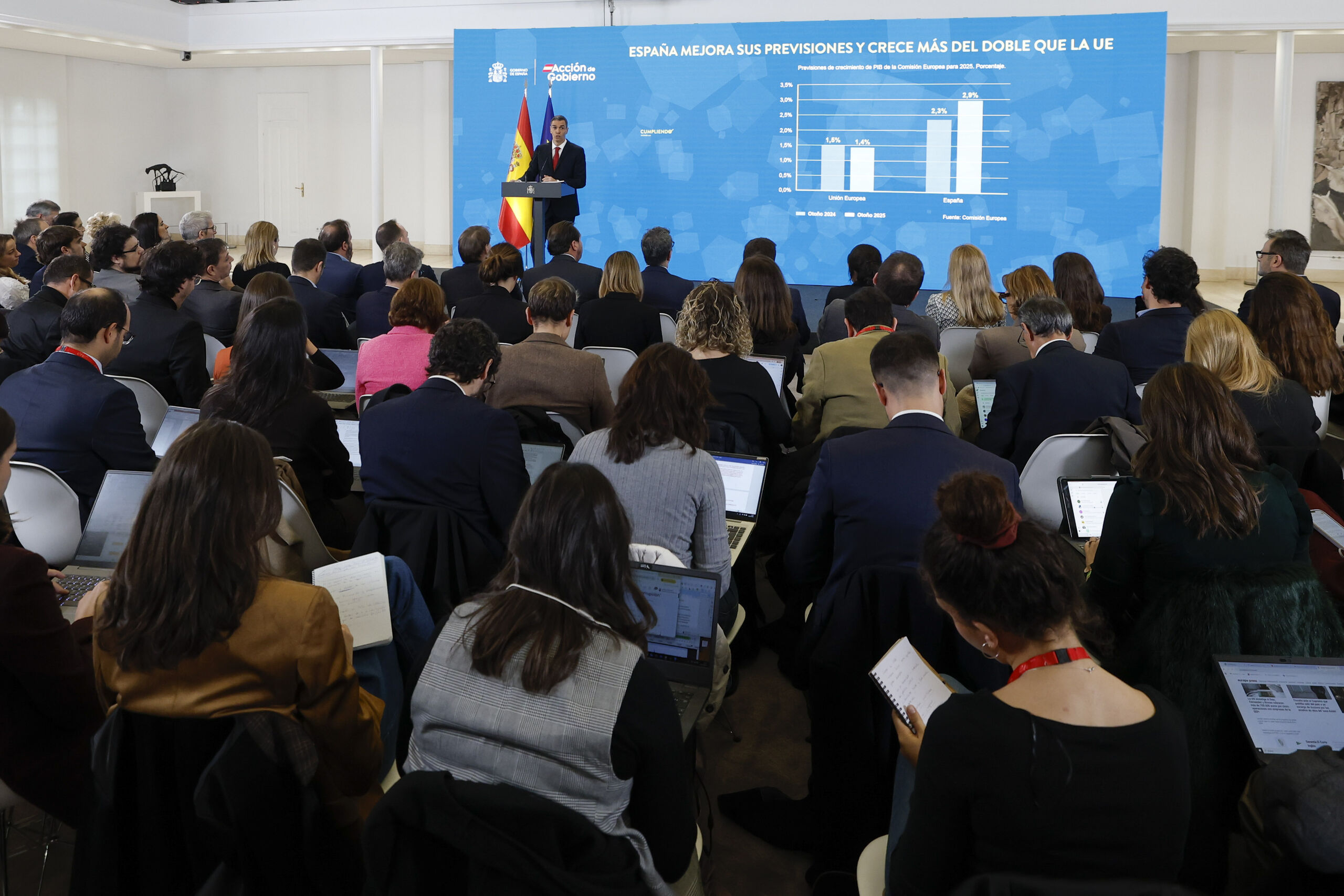Tanto en su comparecencia inicial como en el turno de preguntas ha presumido de su reacción ante estos escándalos y ha avisado, de múltiples formas, de su intención de seguir, descartando un adelanto electoral o incluso una mera crisis de gobierno, como reclamó Yolanda Díaz.
