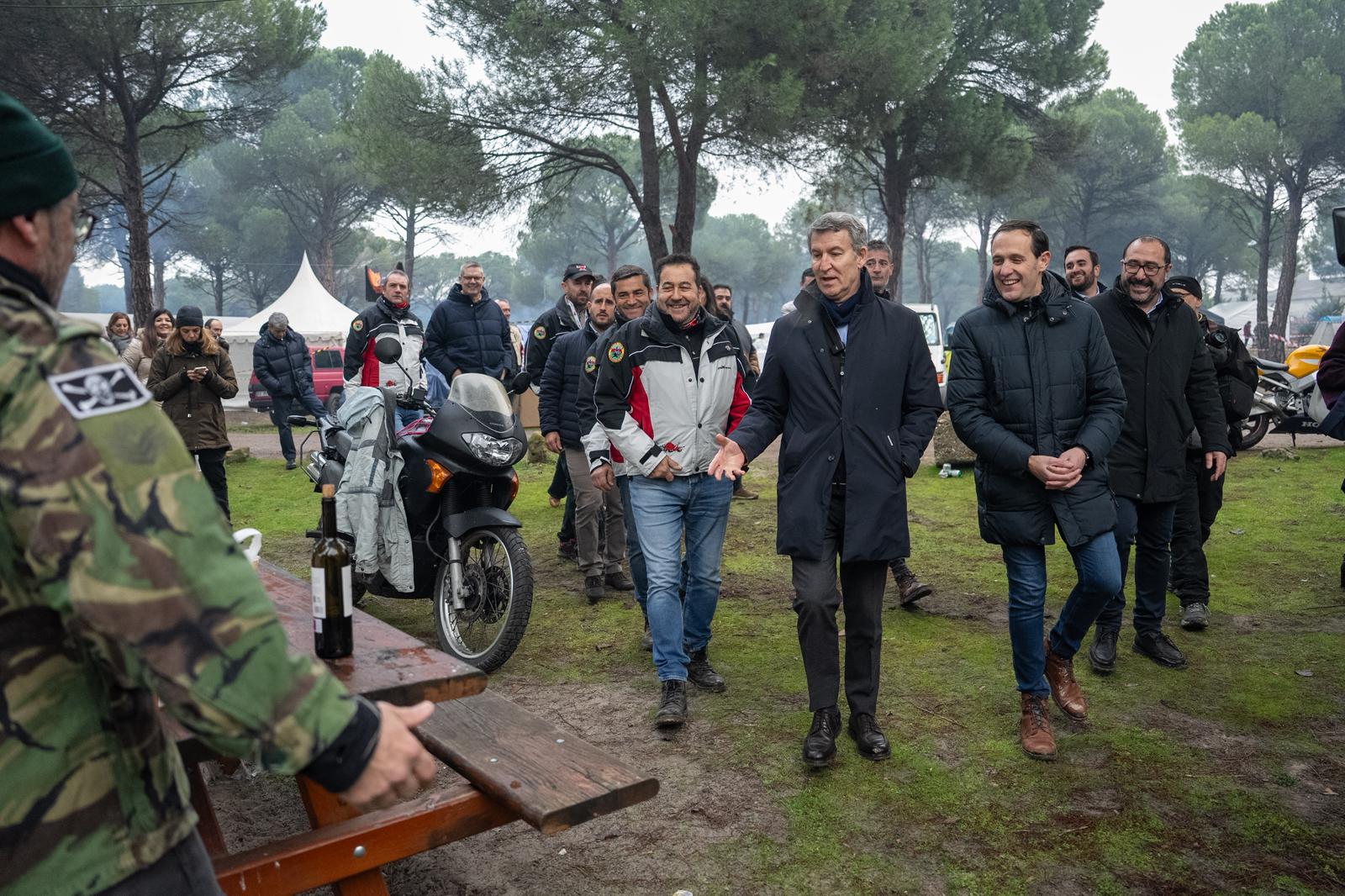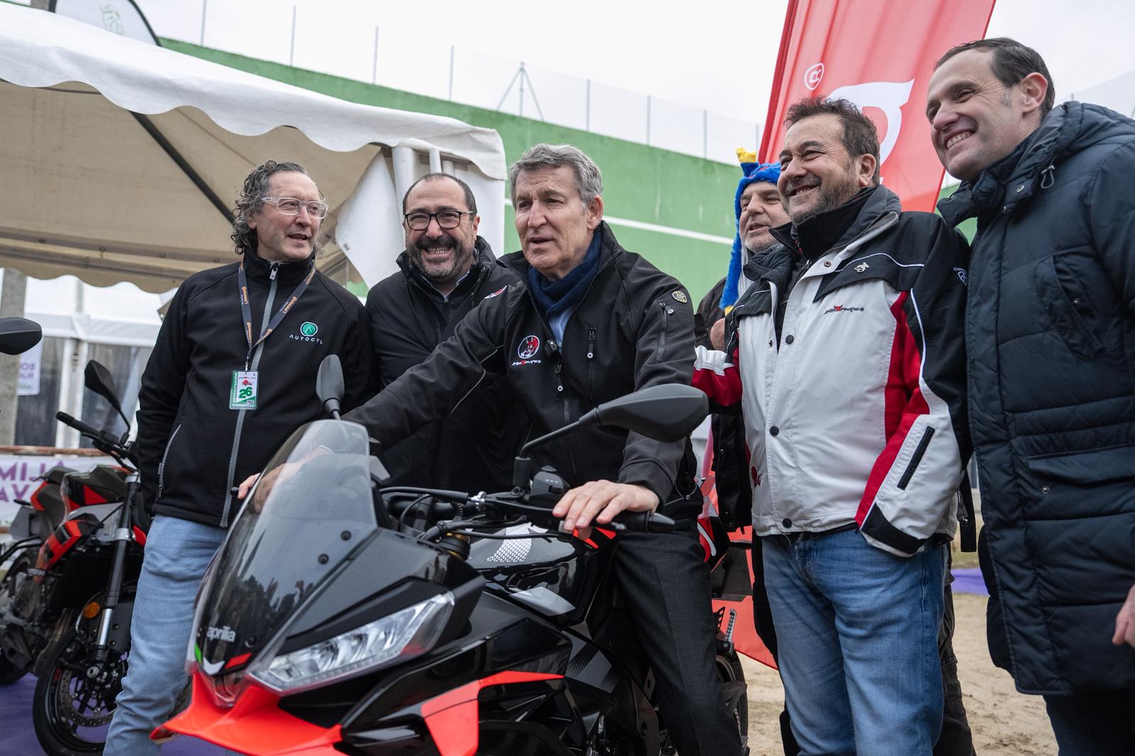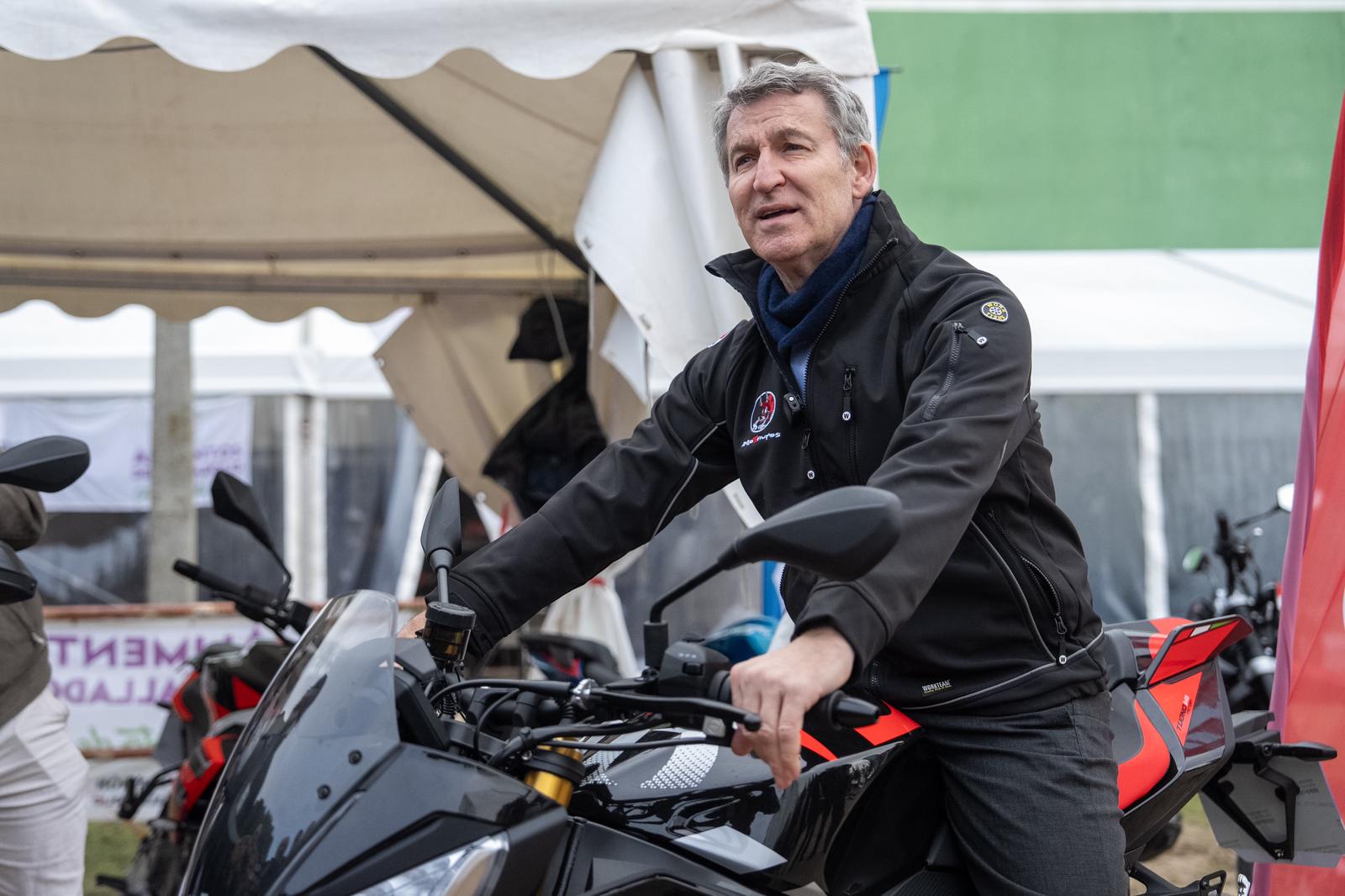 Antes del acto político, Feijóo y su equipo hicieron una pausa en la localidad vallisoletana, que celebra estos días una multitudinaria concentración motera en el Parque de Valdegalindo denominada Motauros. Allí, Feijóo se dejó ver con algunos de los asistentes y posó para los fotógrafos subido en una moto de gran cilindrada con una cazadora motera.