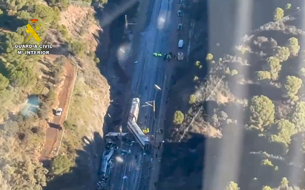 Primeras imágenes áreas del Iryo siniestrado en el accidente.