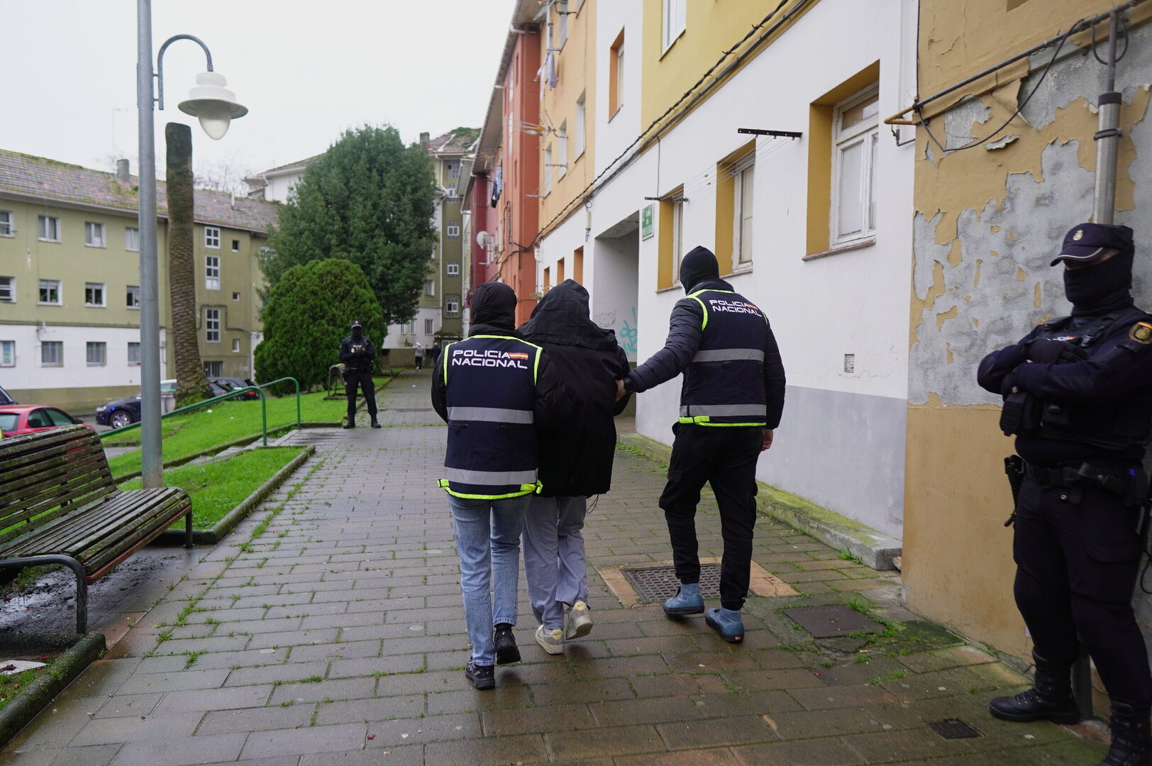 El operativo de Ferrol ha supuesto un gran despliegue policial y se ha desarrollado durante varias horas en un inmueble del barrio de Recimil. El dispositivo policial ha comenzado a primera hora de la mañana de este martes y se ha centrado específicamente en un inmueble de viviendas sociales situado en el número 4 de la calle Ortigueira. Los agentes especializados han llevado a cabo un exhaustivo registro de la vivienda, de la que han retirado diversas cajas con material que será analizado en el marco de la investigación.