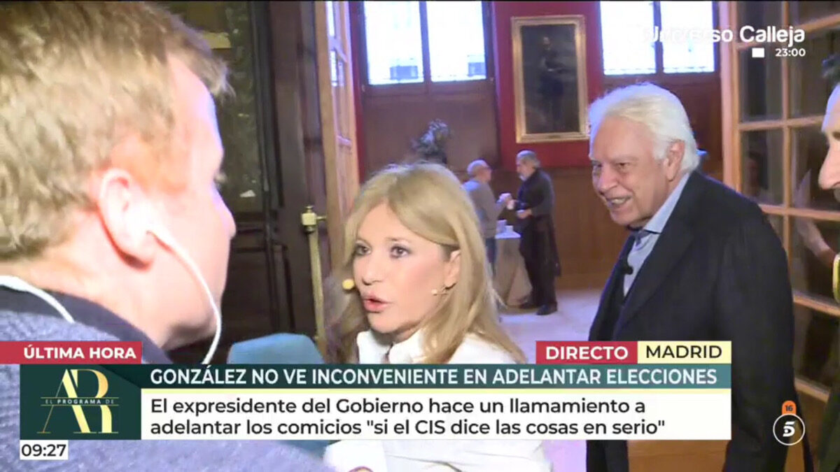 Desde el programa presentado por Ana Rosa Quintana se ha enviado a un reportero, Toño García, para que intentase poner el micrófono a Felipe González y este respondiera a unas preguntas. Principalmente dirigidas a los resultados electorales obtenidos por el PSOE en Aragón.