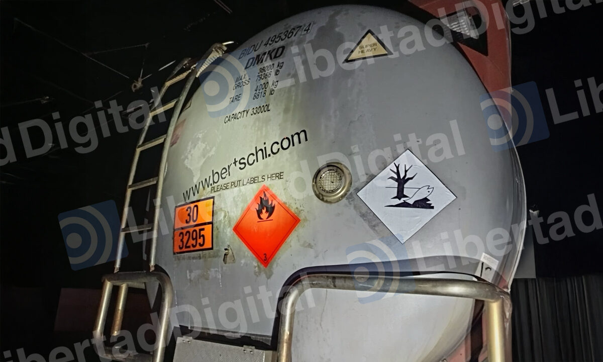 Libertad Digital publica una fotografía del incidente en la que se muestra que el tren transportaba un depósito con capacidad para 33.000 litros de liquido inflamable y una carga máxima de 36.000 kilos.