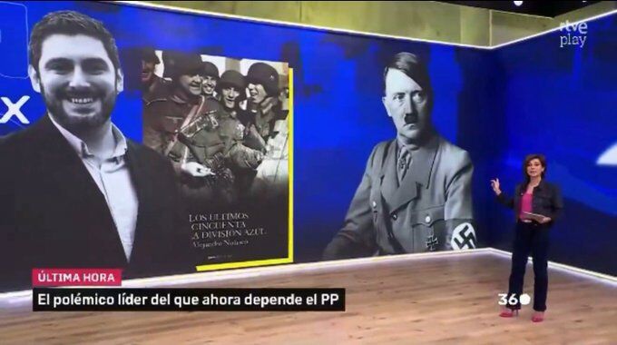 Después del avance de VOX en las elecciones autonómicas de Aragón, Televisión Española ha usado una imagen de Adolf Hitler para vincular a Alejandro Nolasco, candidato del partido, con el nazismo tras haber escrito libros de historia sobre la División Azul, la unidad de voluntarios españoles que luchó en el frente ruso junto al ejército alemán durante la Segunda Guerra Mundial.