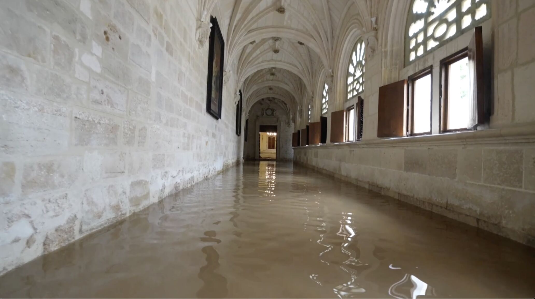 El patrimonio histórico de la provincia de Burgos ha sufrido un duro revés. El Monasterio de Santa María de la Vid, aunque cuenta con distintos estilos arquitectónicos, es una de las joyas del gótico tardío y Bien de Interés Cultural (BIC) que custodia la ribera del Duero desde el siglo XII y ha sido víctima de la fuerza del río. La crecida, que ya venía avisando con cotas históricas en jornadas previas, terminó por desbordarse ayer por la noche, anegando las estancias interiores.