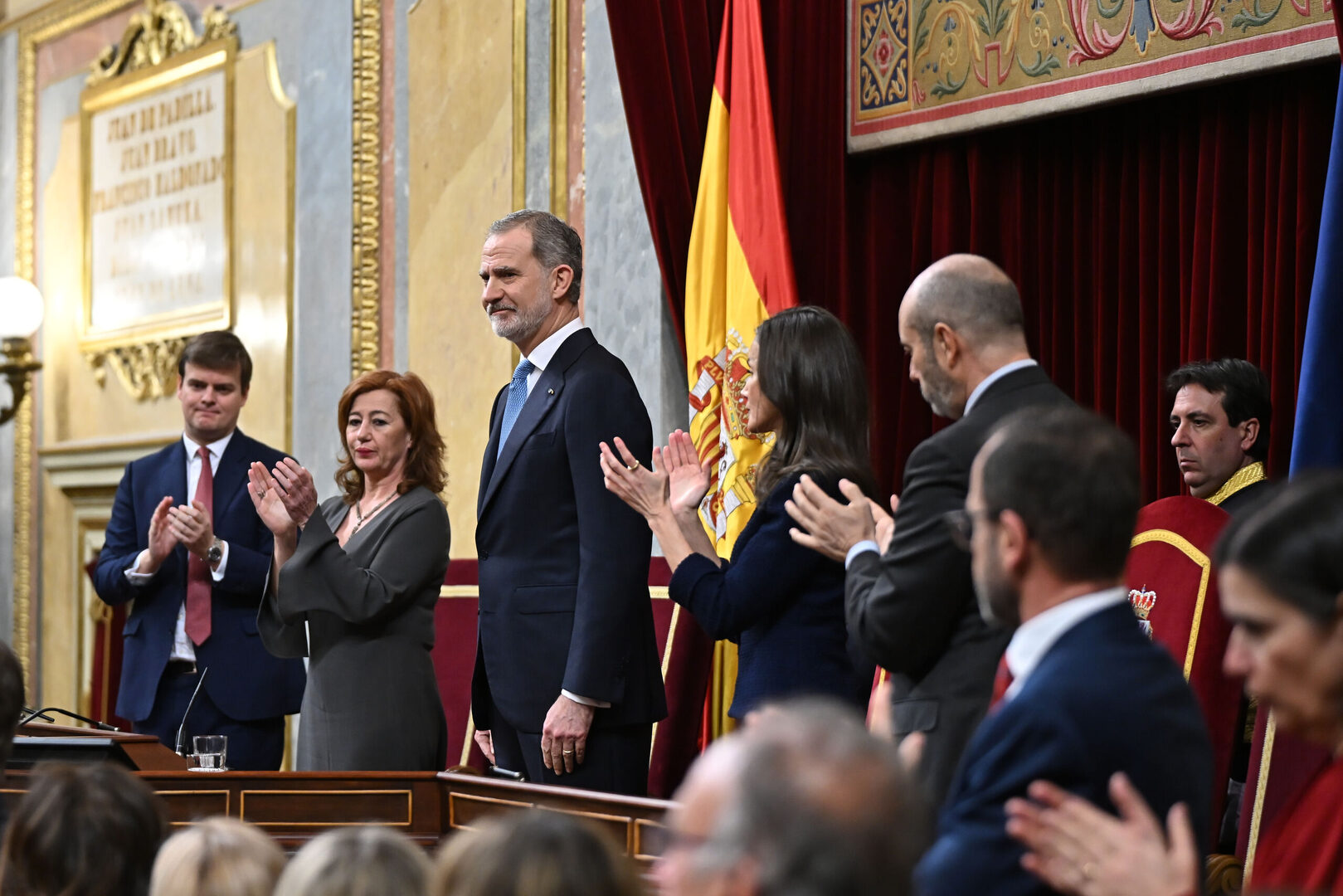 El Rey Felipe VI ha presidido este martes en el Congreso de los Diputados el acto institucional que conmemora que la Constitución de 1978 se ha convertido en la más longeva de la historia constitucional española, junto a la Reina Letizia.