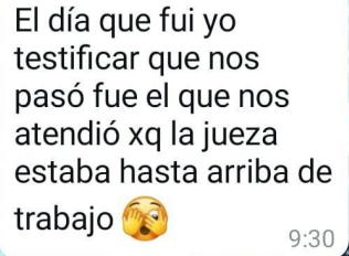 En esos mensajes, a los que ha tenido acceso Es la Mañana de Federico, no sólo se afirma que el marido de la magistrada, Jorge Martínez Ribera, estuvo presente en la instrucción si no que, en al menos una ocasión, llegó a tomar declaración en solitario a los comparecientes porque la juez "estaba hasta arriba de trabajo".