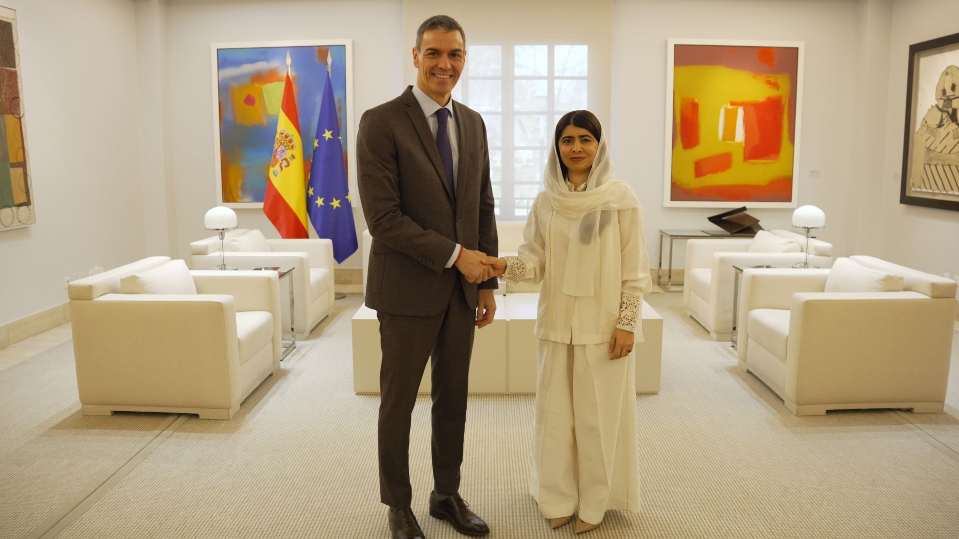 El presidente del Gobierno, Pedro Sánchez, ha recibido en el Palacio de la Moncloa a la Premio Nobel de la Paz Malala Yousafzai, en un encuentro marcado por el reconocimiento al activismo de la joven pakistaní en favor de los derechos de las mujeres y las niñas. Durante la reunión, el jefe del Ejecutivo le ha trasladado su agradecimiento por años de defensa de la educación femenina y ha subrayado que su labor constituye una fuente de inspiración global.