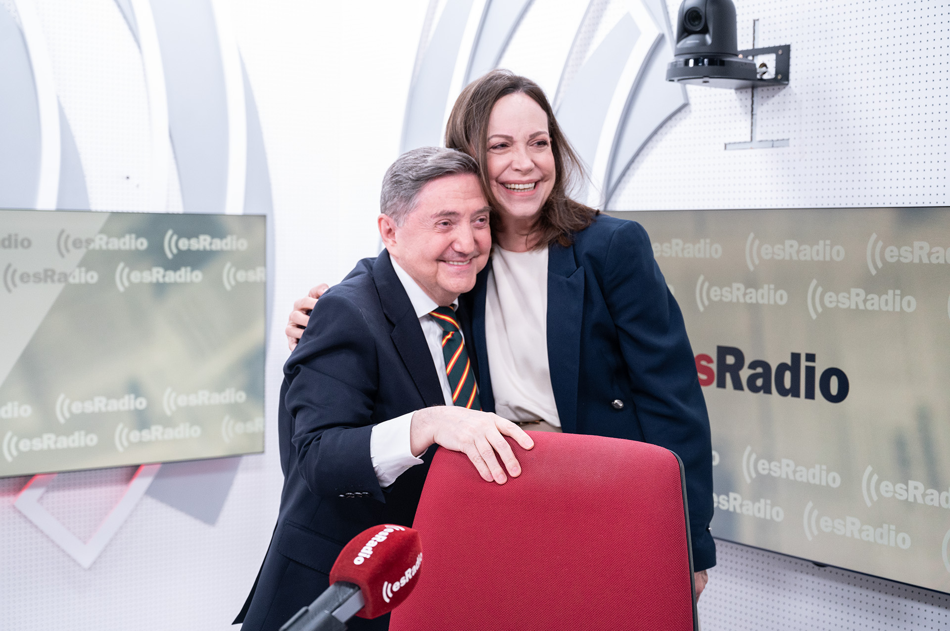 María Corina Machado ha llegado a los estudios de esRadio y lo primero que ha hecho ha sido agradecer a Federico Jiménez Losantos el apoyo de esRadio y Libertad Digital a su causa. "Habéis sido los primeros", ha dicho.