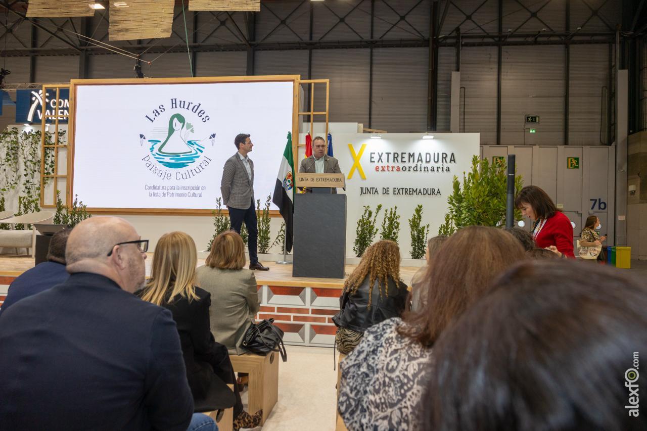 La Asociación para el Desarrollo Integral de la Comarca de Las Hurdes (ADIC-Hurdes), junto a los seis ayuntamientos de la comarca, la Diputación de Cáceres y la Junta de Extremadura, han presentado en el espacio expositivo de Extremadura de FITUR (Pabellón 7, IFEMA Madrid) la candidatura del "Paisaje Cultural de los Bancales de Pizarra de Las Hurdes" para su inclusión en la lista de Patrimonio Mundial de la UNESCO. El acto ha contado con la presencia de José Luis Azabal, presidente de ADIC-Hurdes, y representantes de la Diputación de Cáceres.