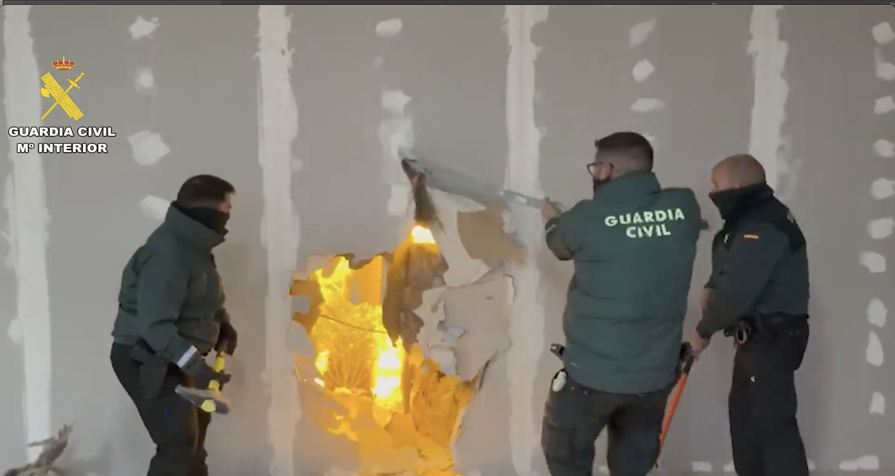 demoliendo la pared de una nave industrial de Puerto Lumbreras (Murcia), tras la que permanecía oculto un invernadero con