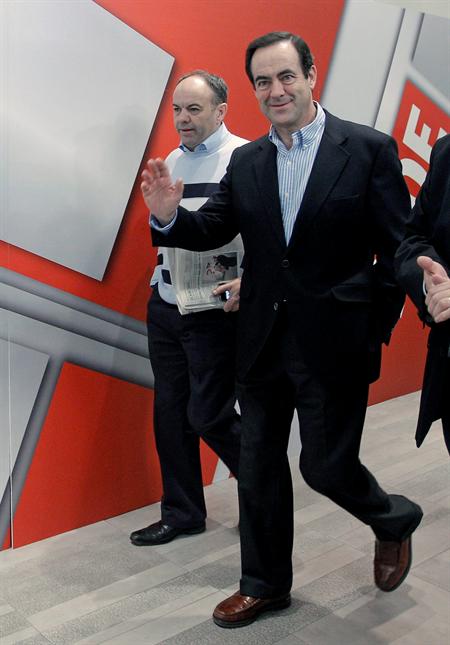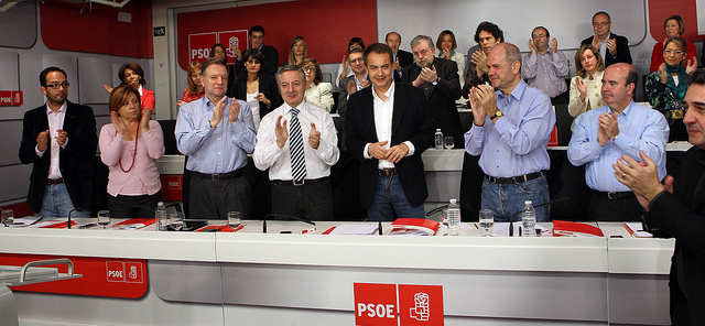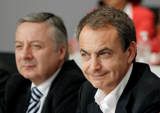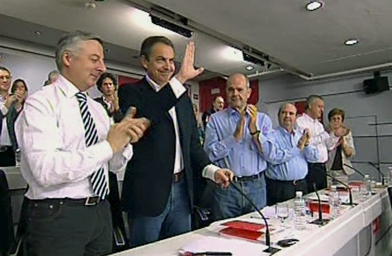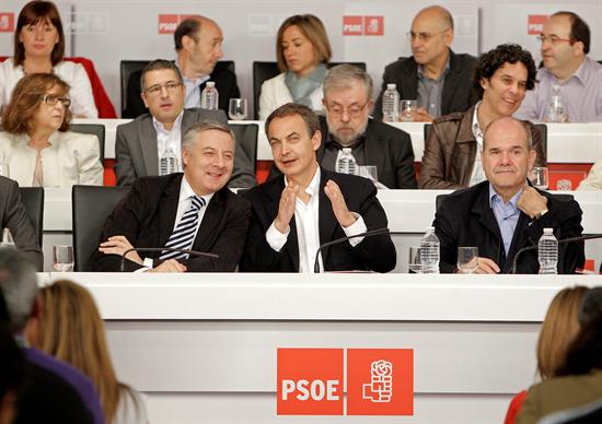 José Blanco, Zapatero y Chaves. Zerolo, al fondo, es el único que sonrie