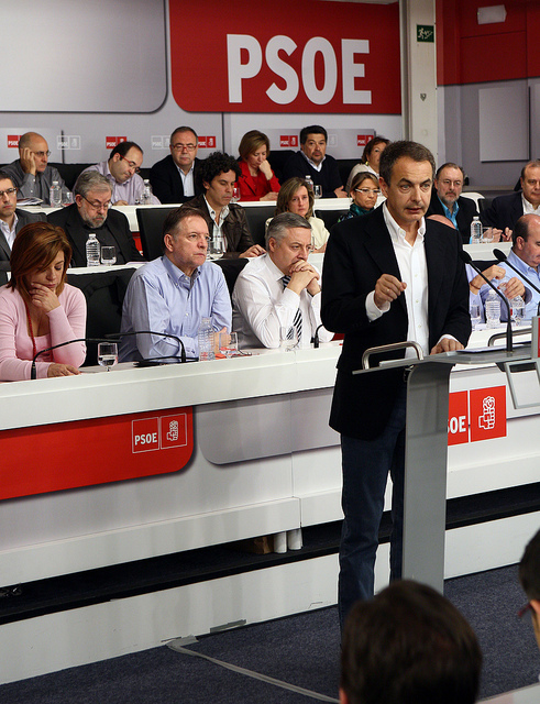 Zapatero, en un momento de su intervención, mientras todos escuchan con rostro serio