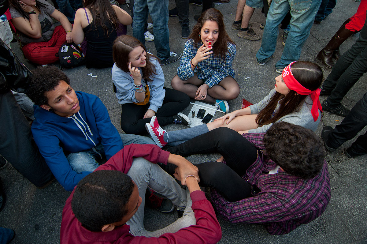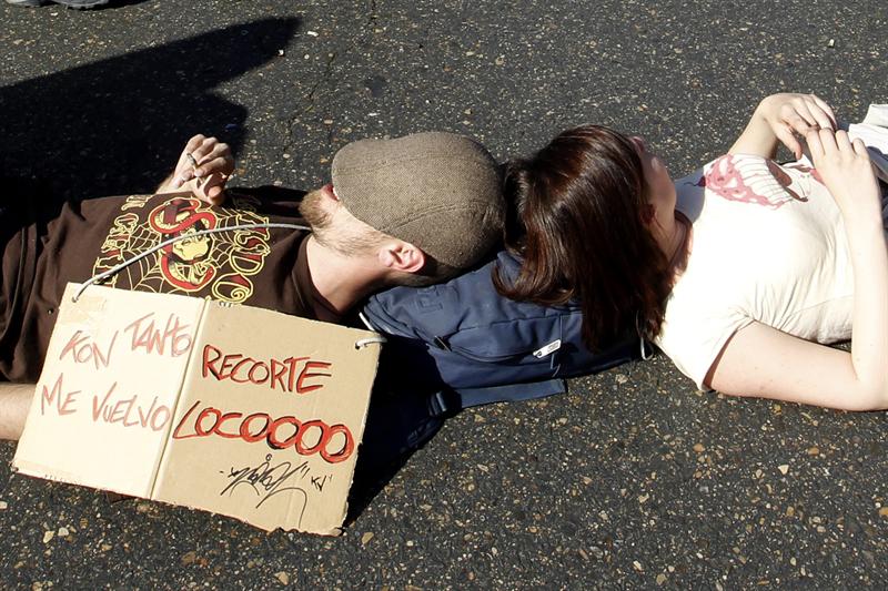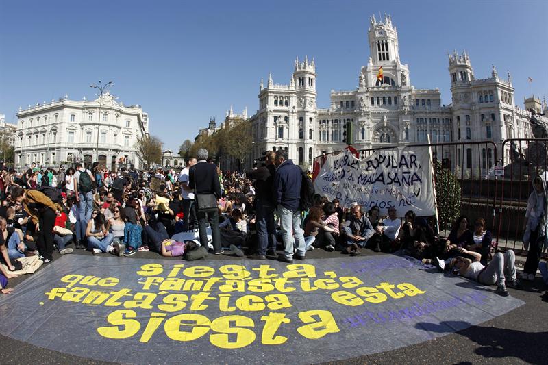 Los indignados llevando a cabo su "Gran Siesta Colectiva" en Cibeles