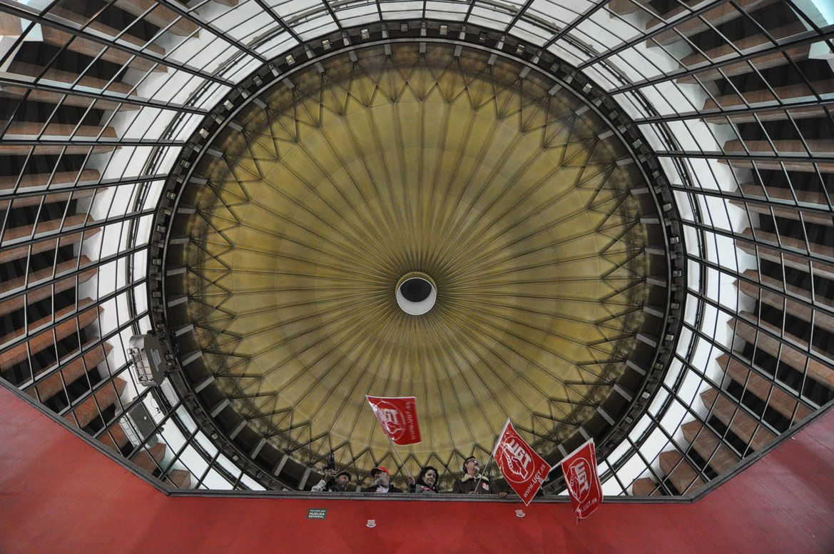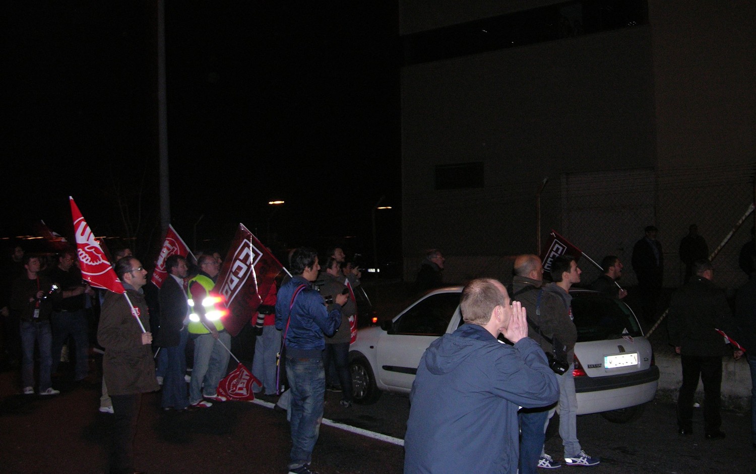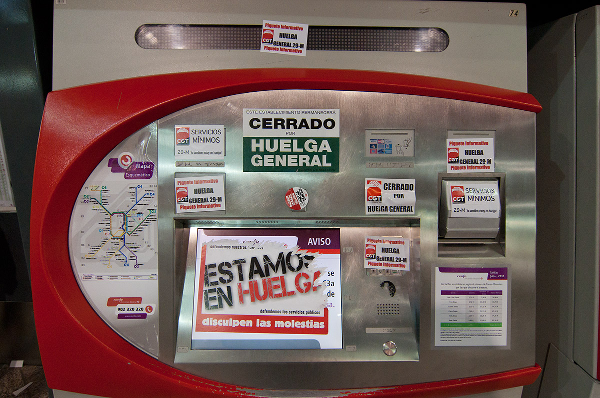 Trabajadores junto a los piquetes en Atocha, mirando de reojo y un tanto intimidados. Un sindicalista simpático les ha ofrecido bocadillos, pero nadie ha aceptado