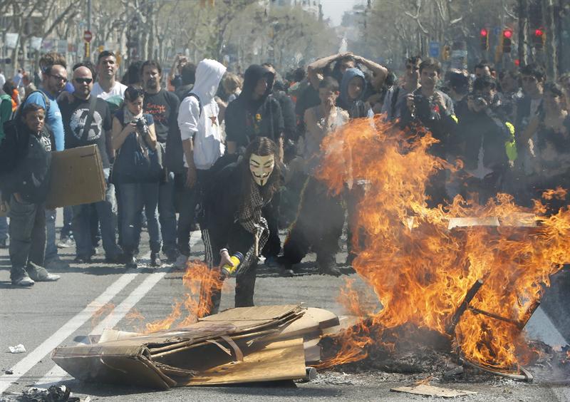 Un grupo de manifestantes, algunos enmascarados, prendieron varios fuegos en el Paseo de Gracia