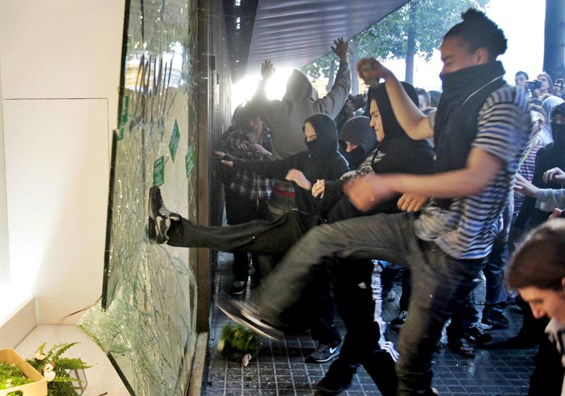 Un grupo de manifestantes la emprende contra unos grandes almacenes en Barcelona