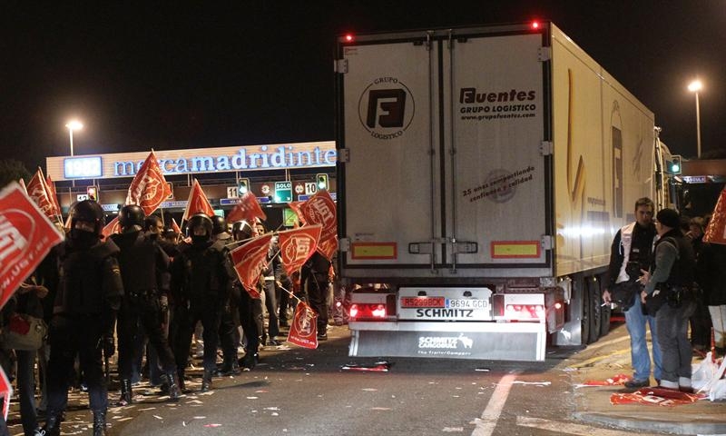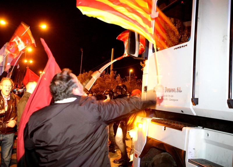 En Aragón los piquetes increparon a los camiones que querían trabajar