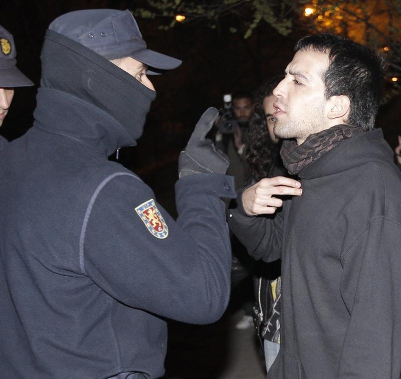 Un manifestante mira desafiante a un antidisturbios. Durante la protesta, hubo cargas policiales