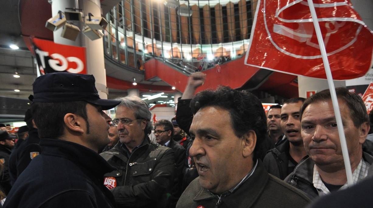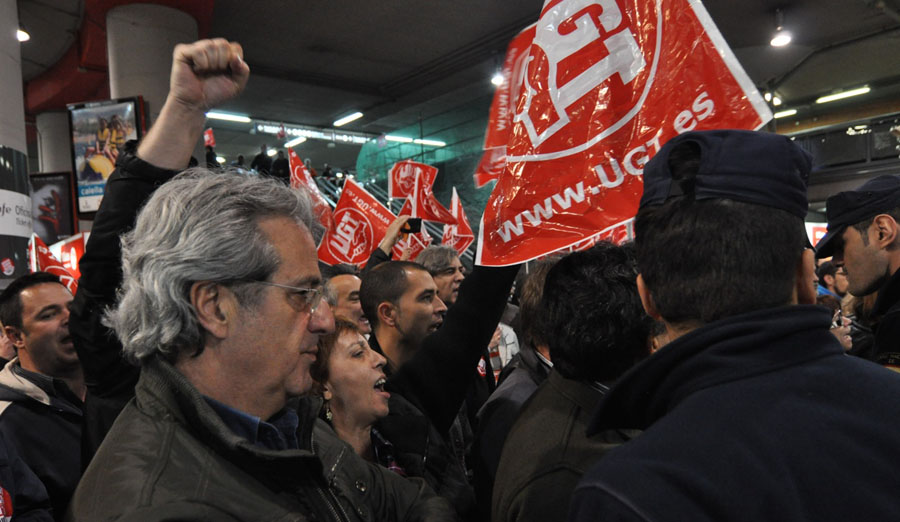 José Ricardo Martínez, líder de UGT en Madrid, en uno de los piquetes en Atocha