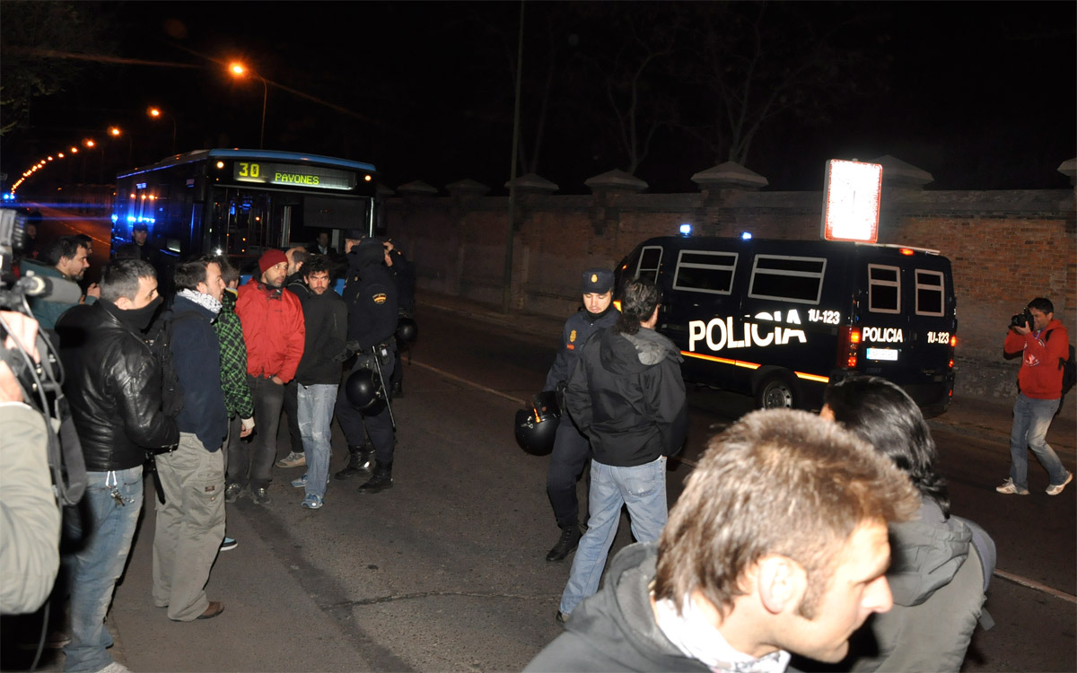 Indigandos, separados del grupo principal de piquetes, no permitieron el tránsito de los autobuses durante varios minutos además de increpar a la policía.