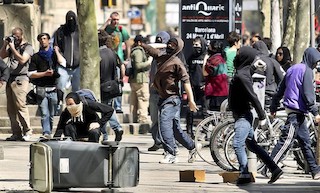 "Estudiantes" encapuchados avanzan por Barcelona cortando las calles a su paso