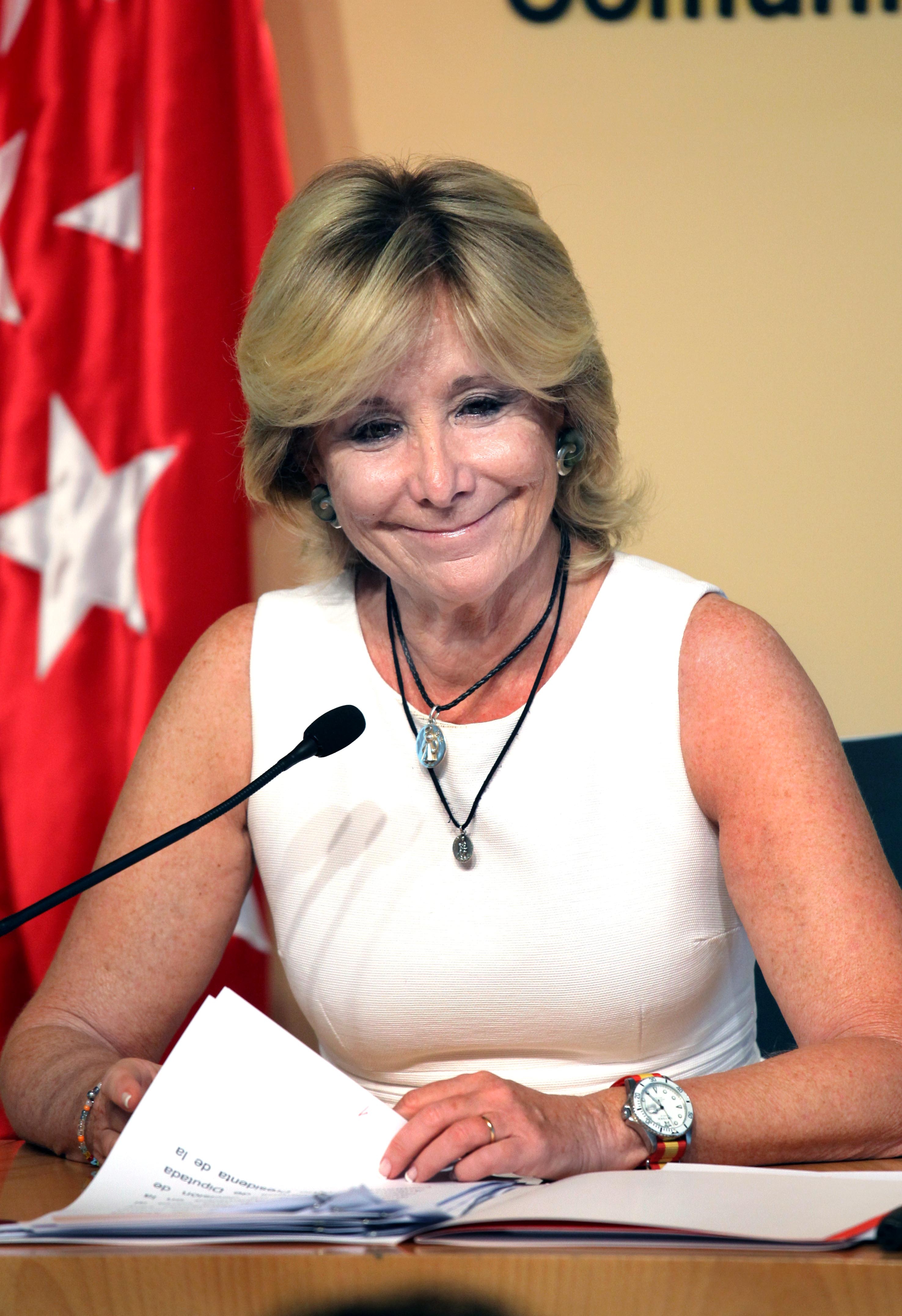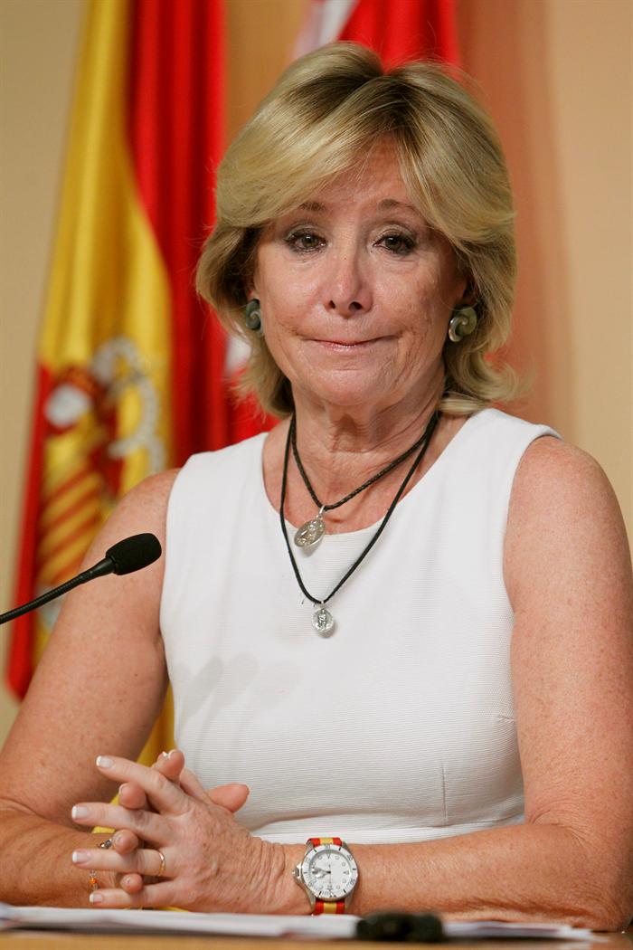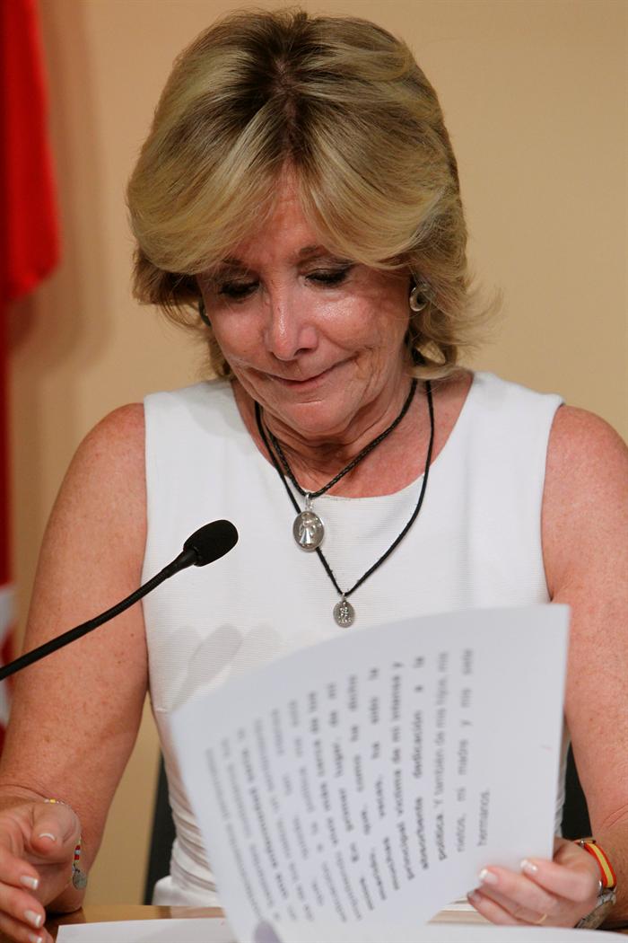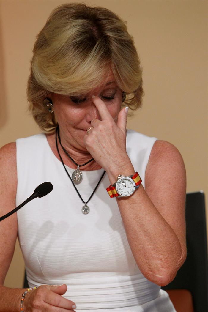 Esperanza Aguirre, muy seria, se dirige a dar la rueda de prensa donde anunciaría su dimisión