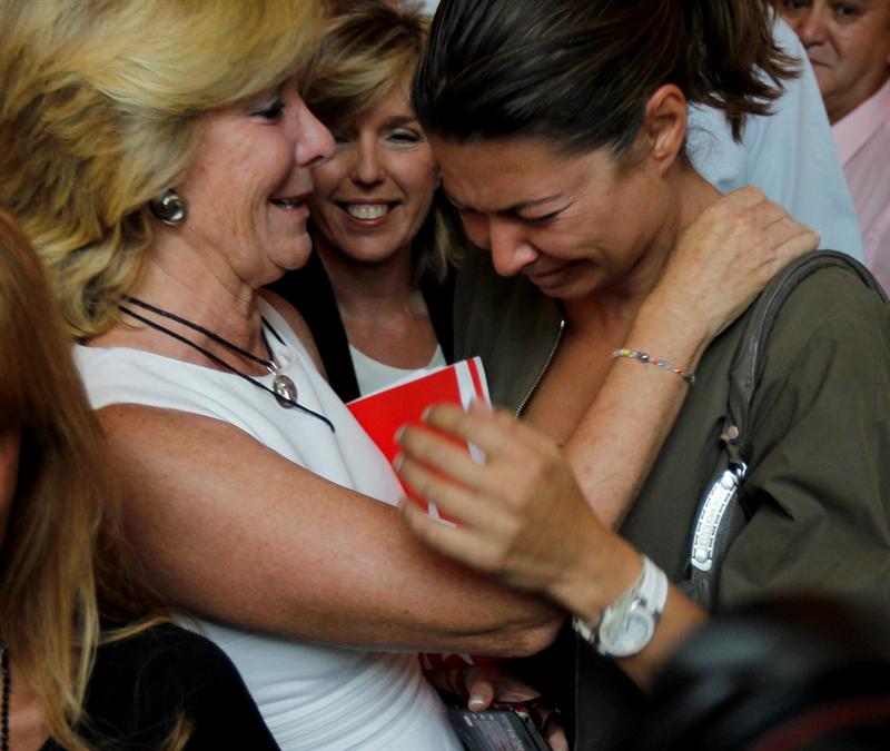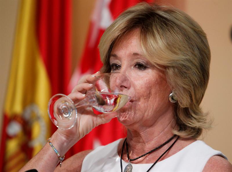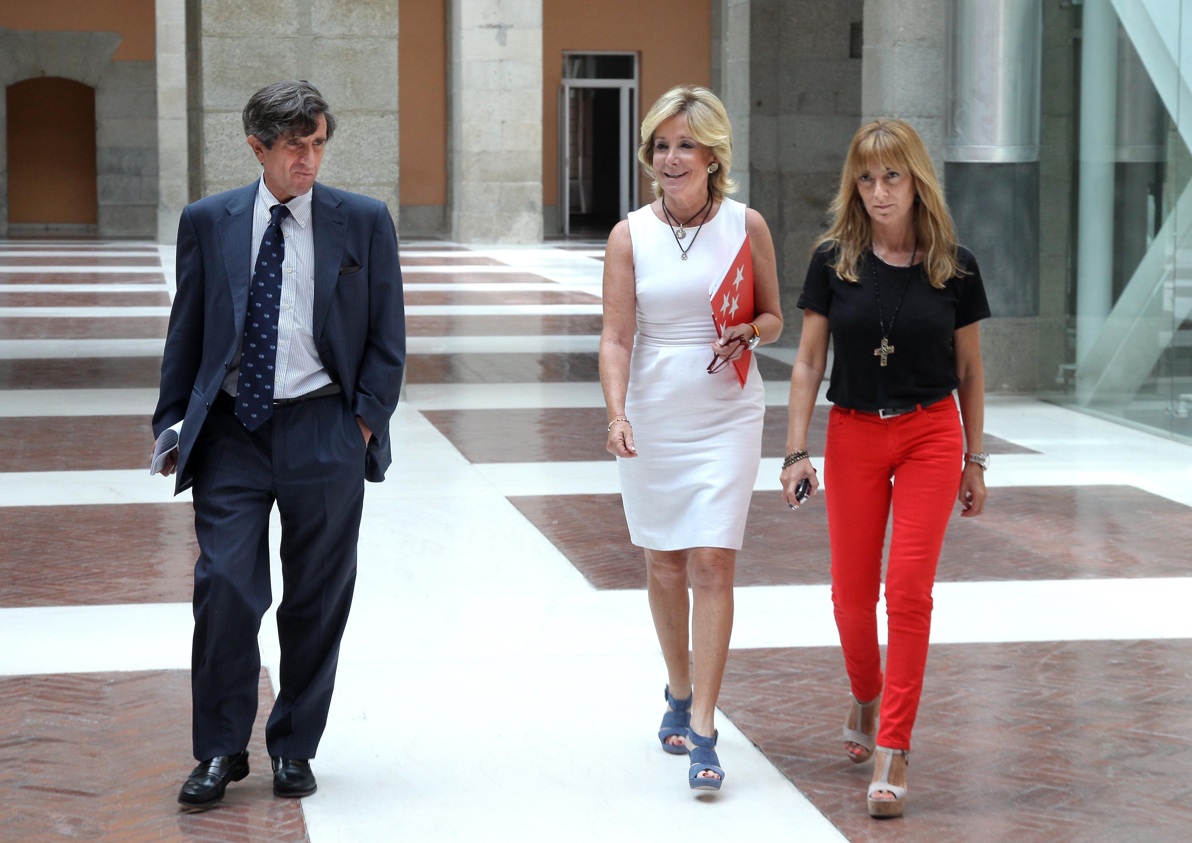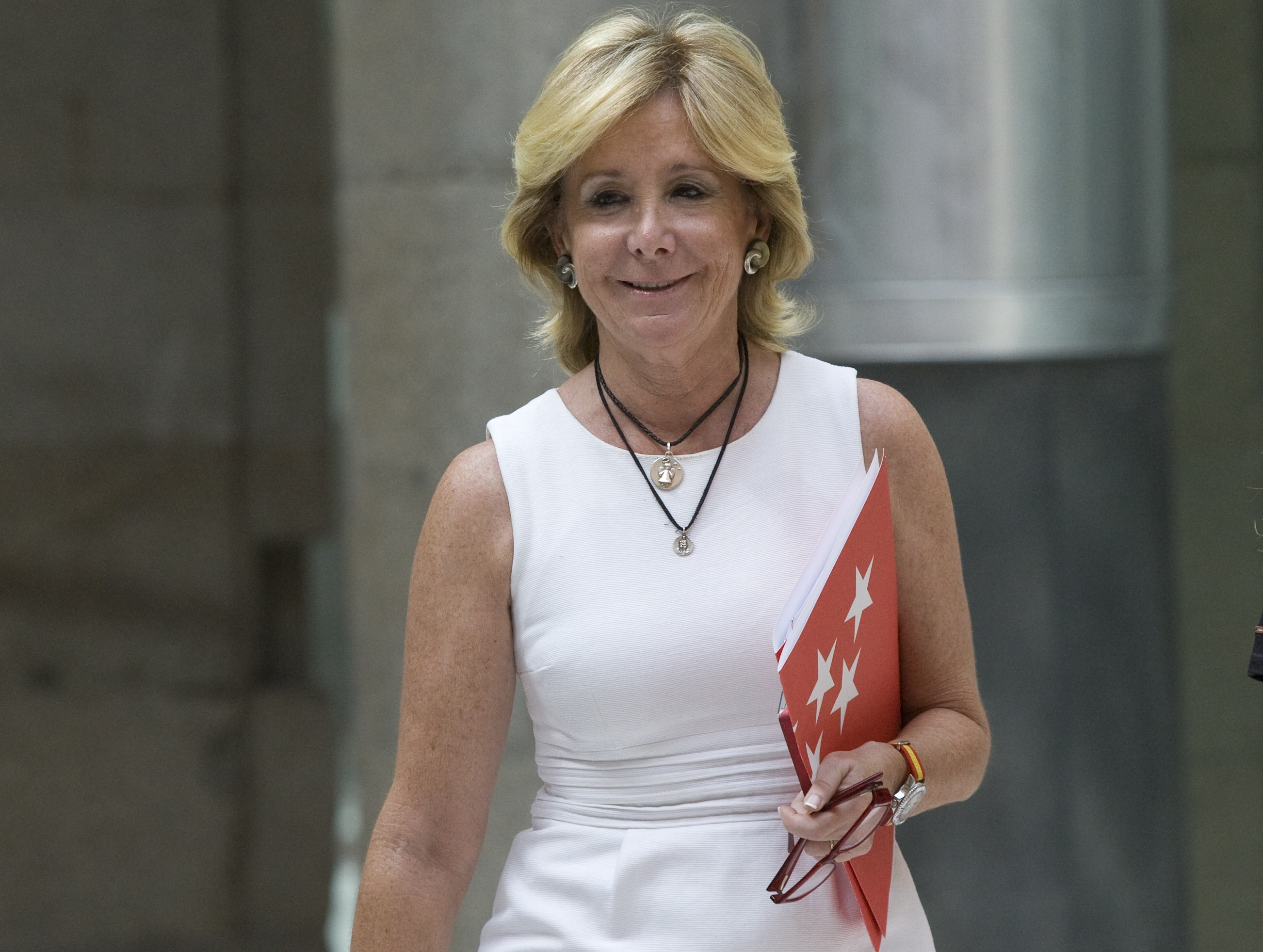 Esperanza Aguirre, muy seria, se dirige a dar la rueda de prensa donde anunciaría su dimisión