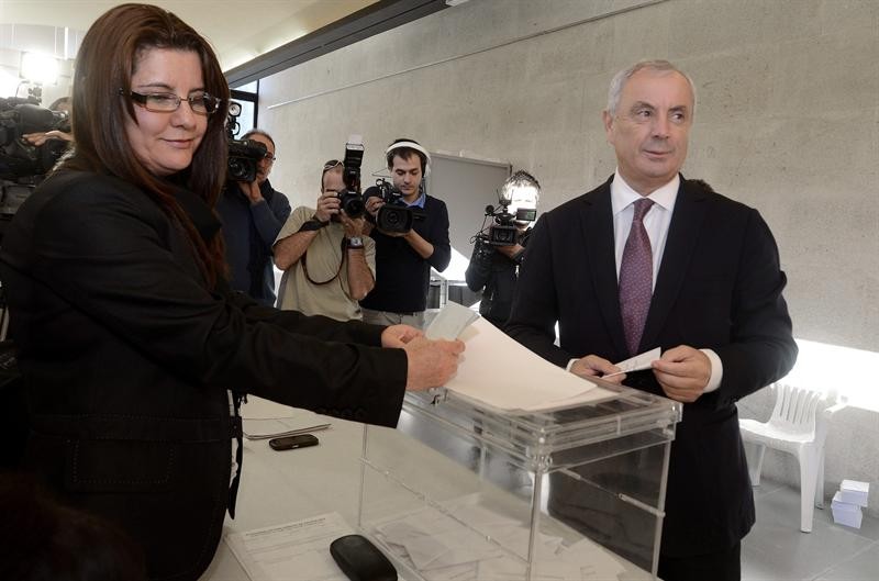 El candidato del PSdeG a la Presidencia de la Xunta, Pachi Vázquez, ejerce su derecho a voto en las eleccione sgallegas en un el colegio electoral O Campo da Feira en O Carballiño (Orense)
