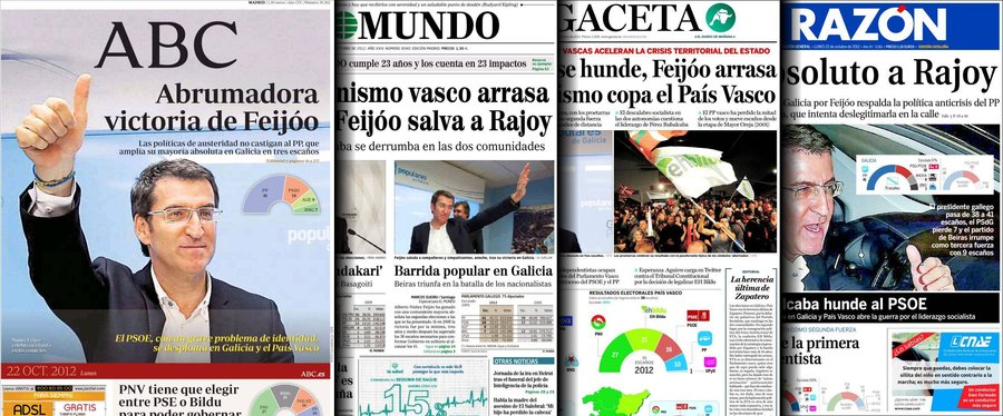 El diario de Pedro J. destaca que el soberanismo vasco "arrasa" y la "barrida popular" en Galicia. También califica como "desastrosos" los resultados de Basagoiti.