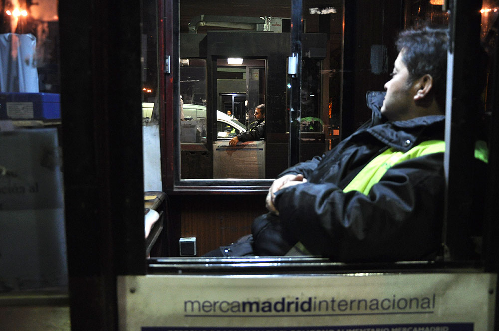 Uno de los trabajadores que atiende la entrada a Mercamadrid.