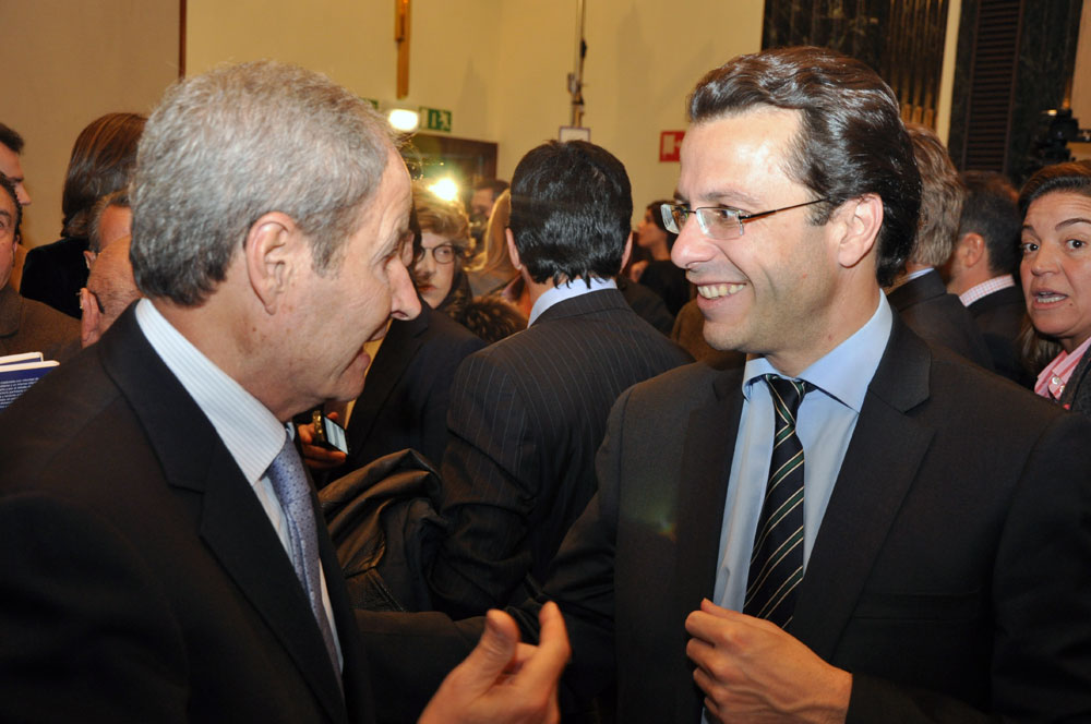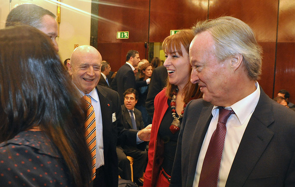 El consejero de Sanidad madrileño, Fernández Lasquetty conversa animadamente con otro asistente.
