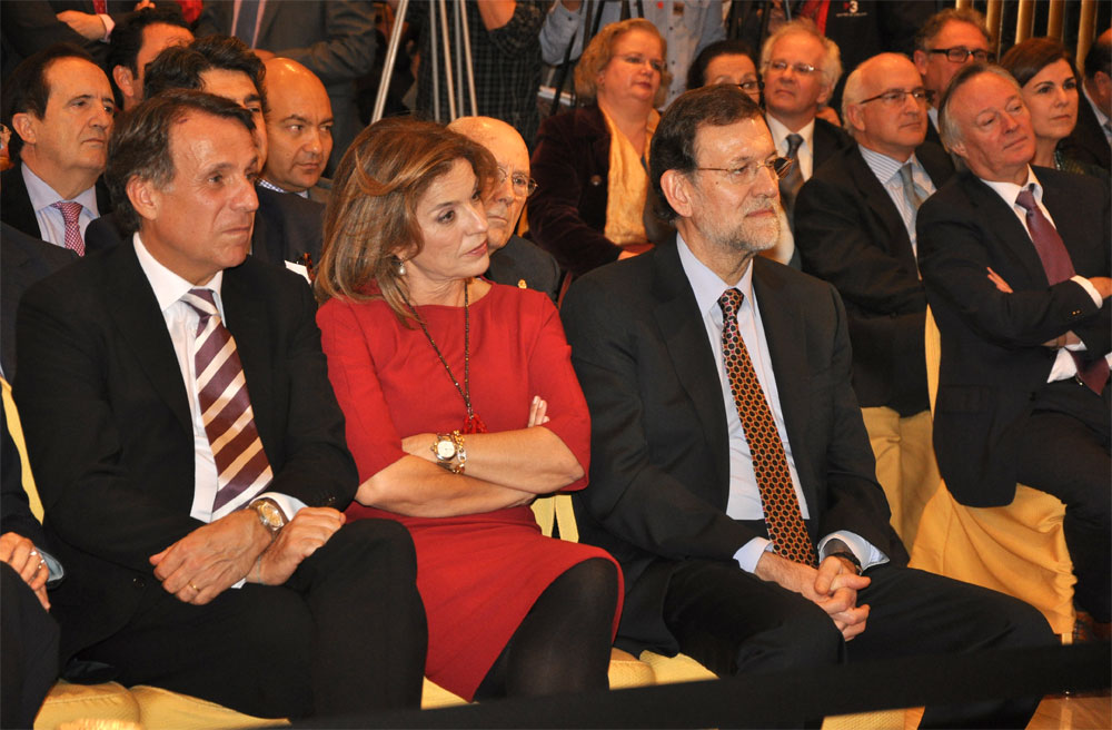 De nuevo la alcaldesa y esposa de Aznar, junto a Rajoy. En segundo término vemos, entre otros, a Juan José Lucas, Jaime García Legaz, Jorge Moragas, José Manuel Romay Beccaria, Josep Piqué, Javier Zarzalejos y José María Marco.