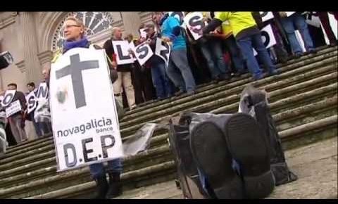 Esta mañana se produjo como en otras ocasiones una nueva concentración de afectados por las participaciones preferentes frente a la Diputación de Pontevedra. Allí acudieron cientos de personas, entre ellas varios alcaldes de municipios gallegos.