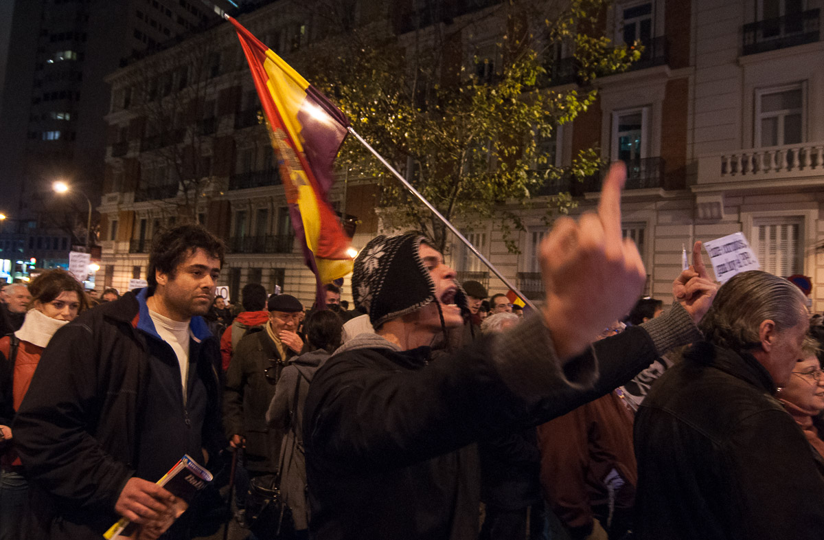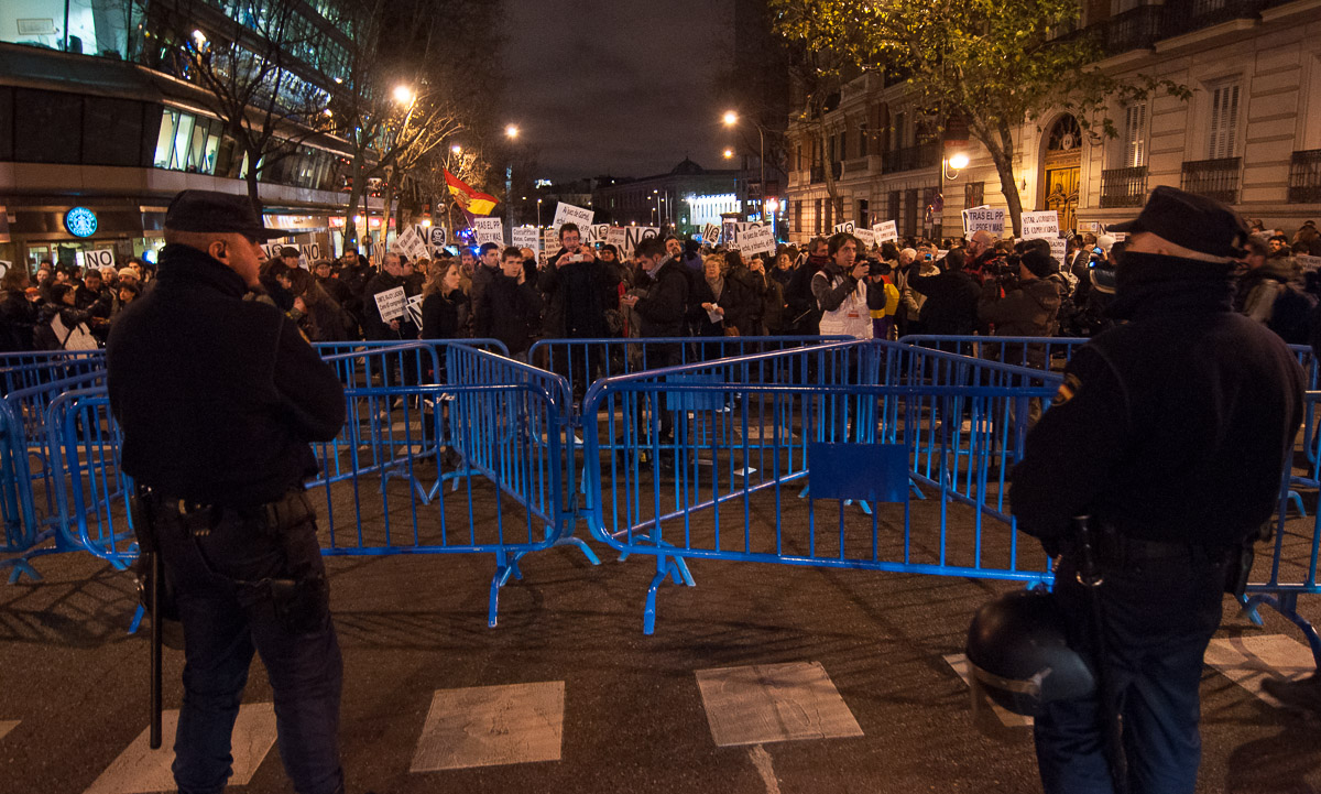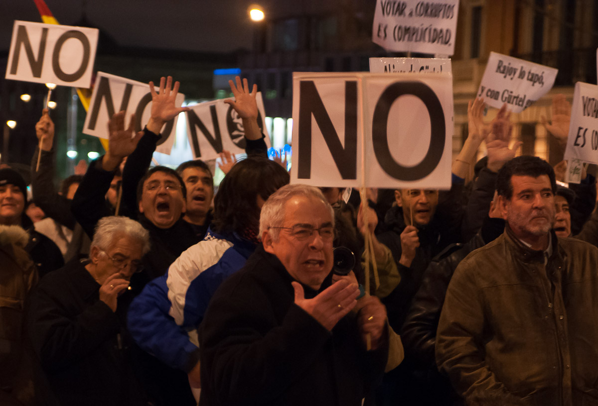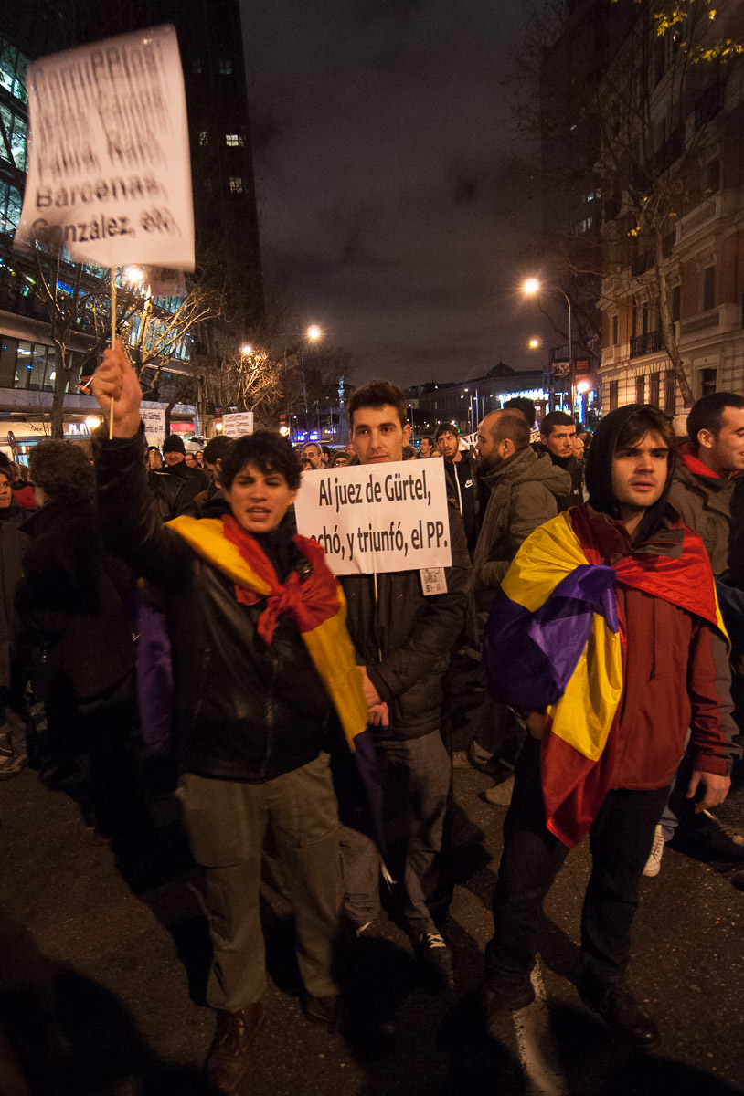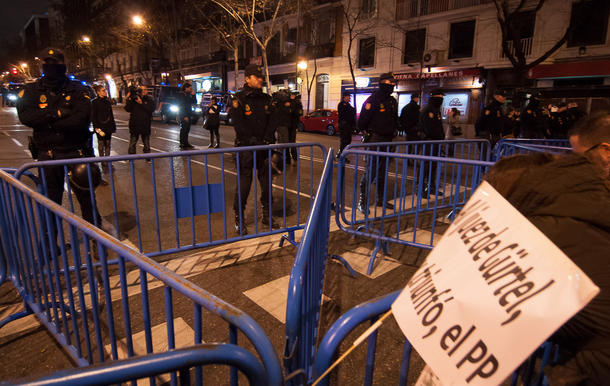 Unas 500 personas se han manifestado este viernes en Génova con la excusa del escándalo Bárcenas profiriendo insultos contra el PP, Rajoy, Cospedal, el propio extesorero del partido e incluso Cristina Cifuentes.