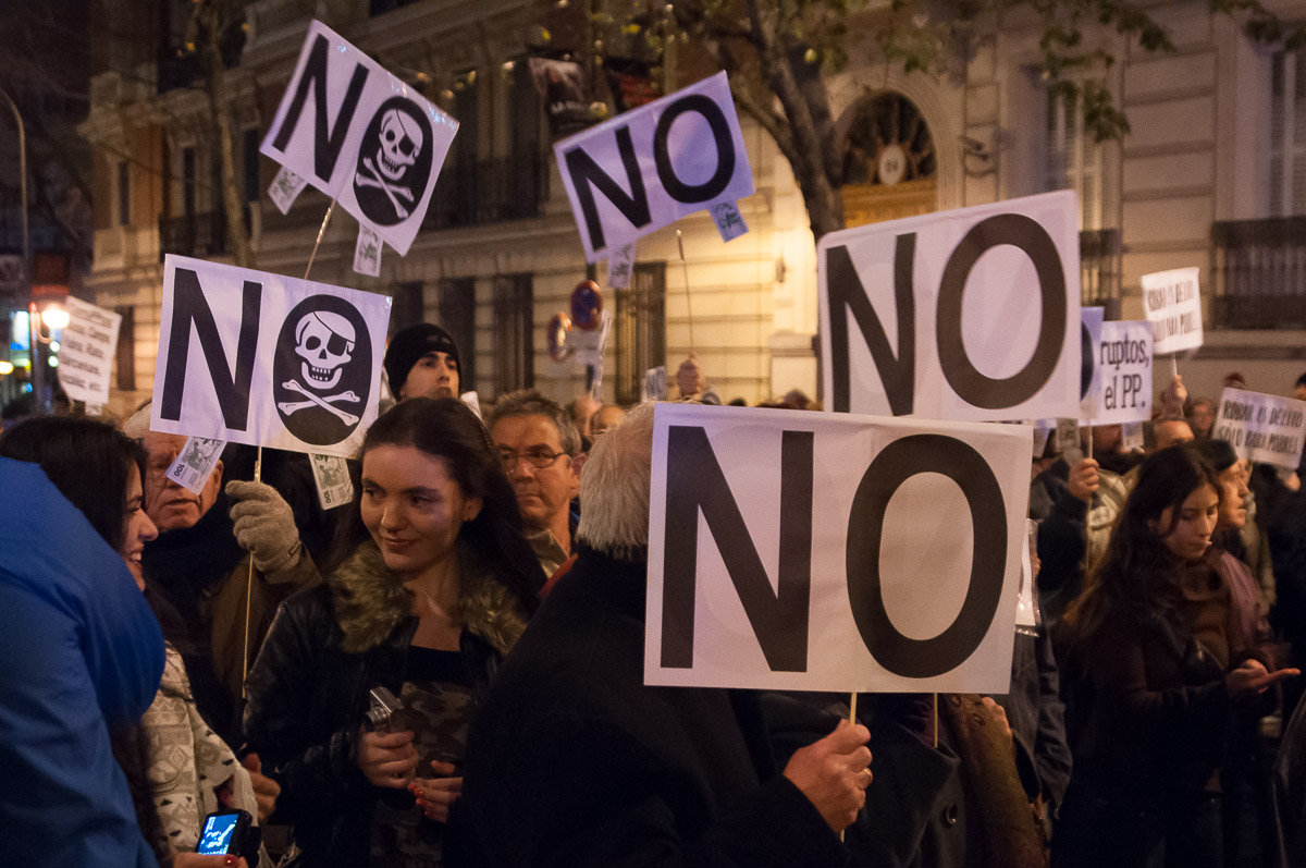 La palabra "NO", que evocaba a otras manifestaciones como las del "No a la Guerra", la más repetida en los carteles