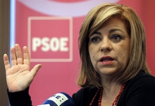 La número dos del PSOE bromea con los periodistas sobre el anuncio de Benedicto XVI de abandonar el Pontificado, que respetan "profundamente".