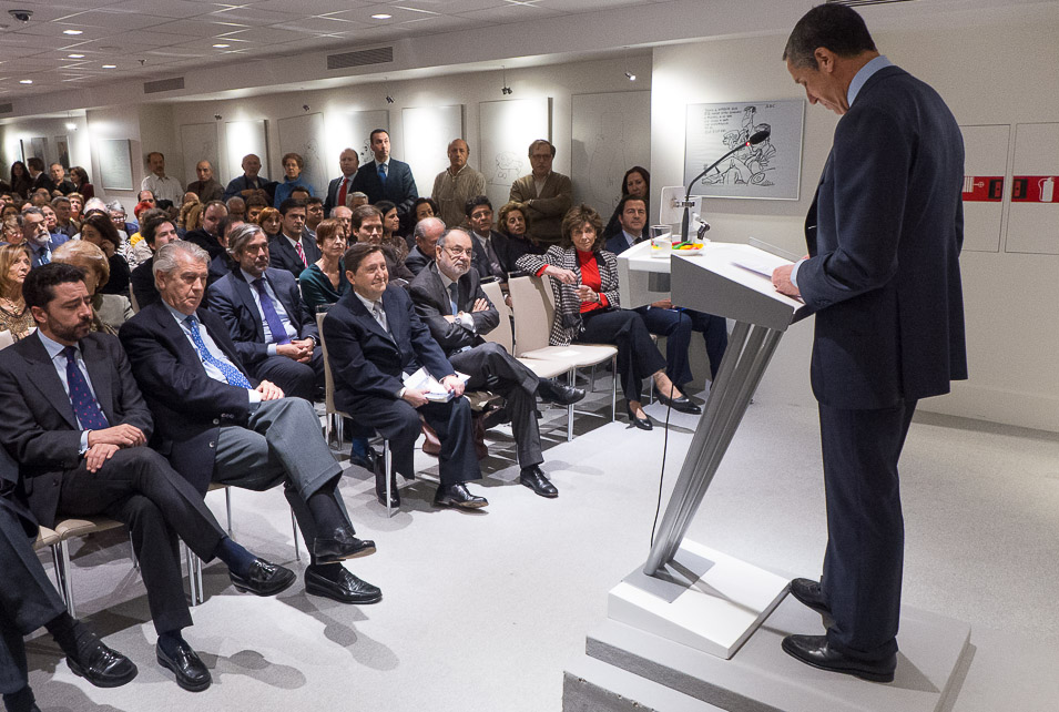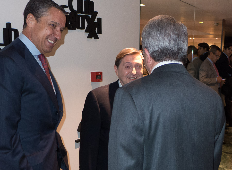 Jiménez Losantos y Zaplana conversan con el empresario y presidente del Atlético de Madrid, Enrique Cerezo (de espaldas)