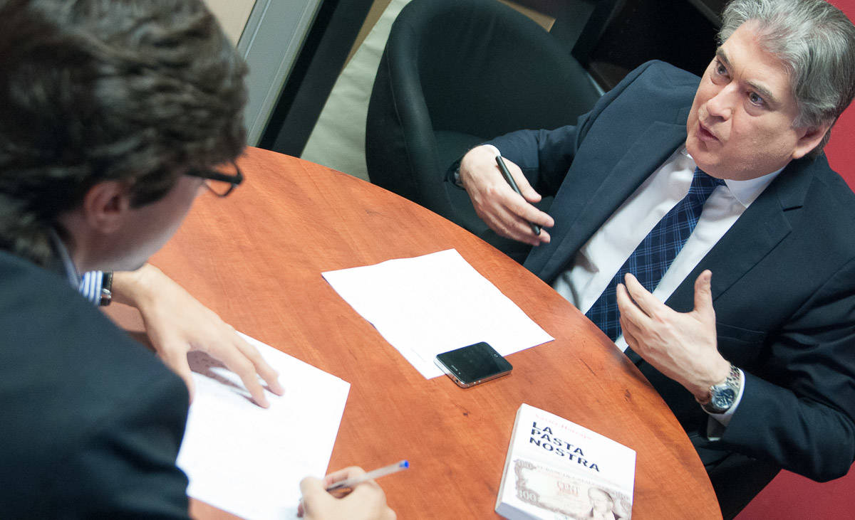 (Xavier Horcajo, junto a un ejemplar de su nuevo libro La Pasta Nostra | LD/C. Jordá)