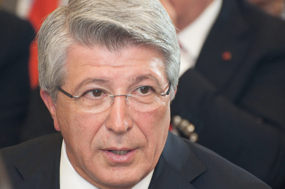 El presidente del Atlético de Madrid, Enrique Cerezo, tampoco quiso perderse el acto