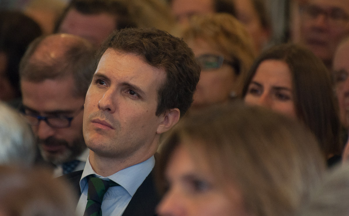 El joven diputado del PP, Pablo Casado, entre el numeroso público